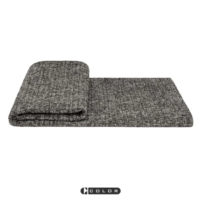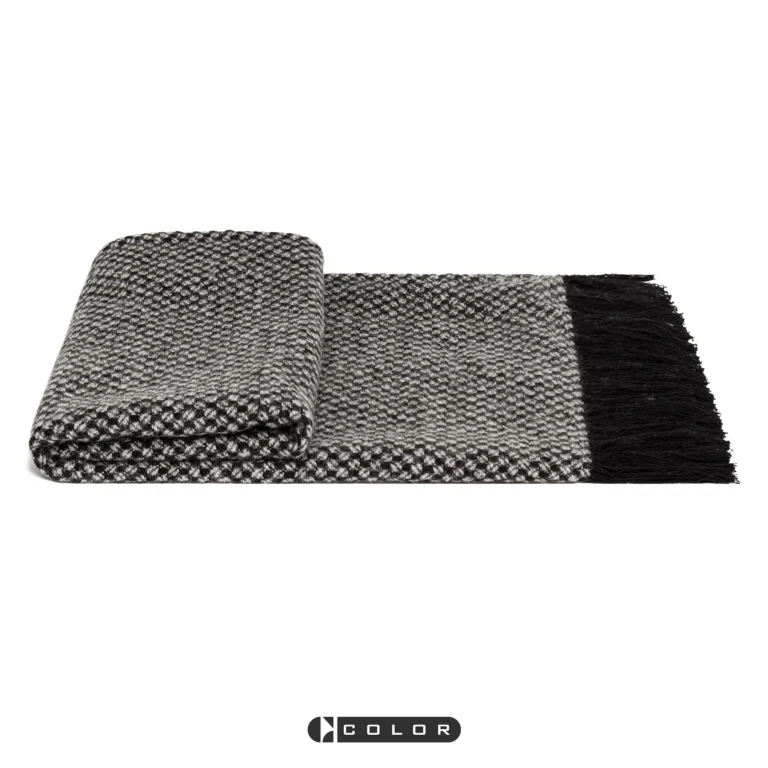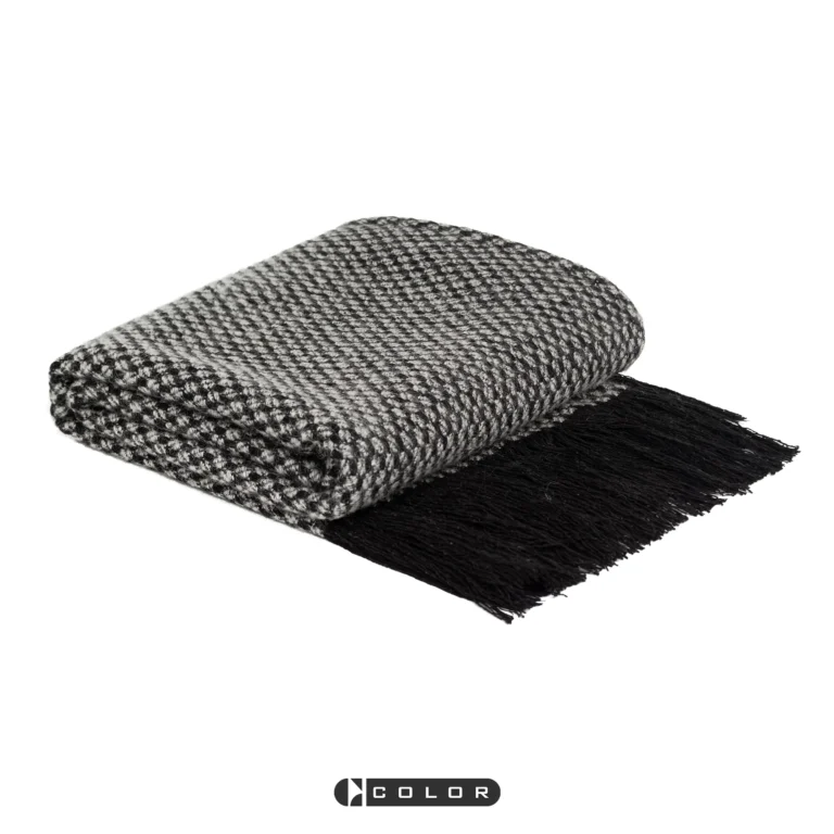 Soft Furnishings for Model Homes: Scandinavian Modern and Italian-Style Luxury Living Room with Bay Window, Black-and-White Textured Wool Throw Blanket and Lounge Blanket