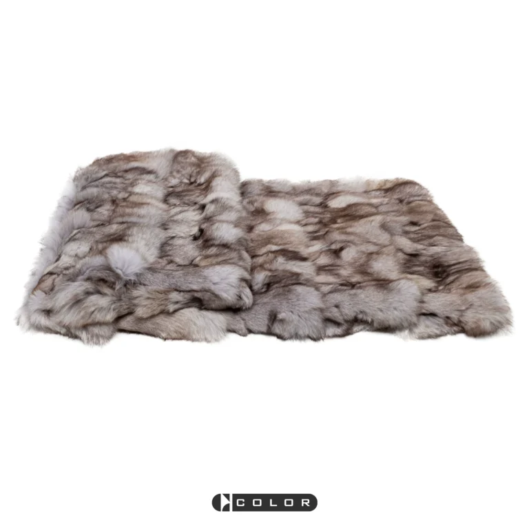 Soft Furnishings for Model Homes: Scandinavian Modern and Italian-Style Luxury Living Room Bay Window with High-End Fox Fur Throw and Lounge Blanket