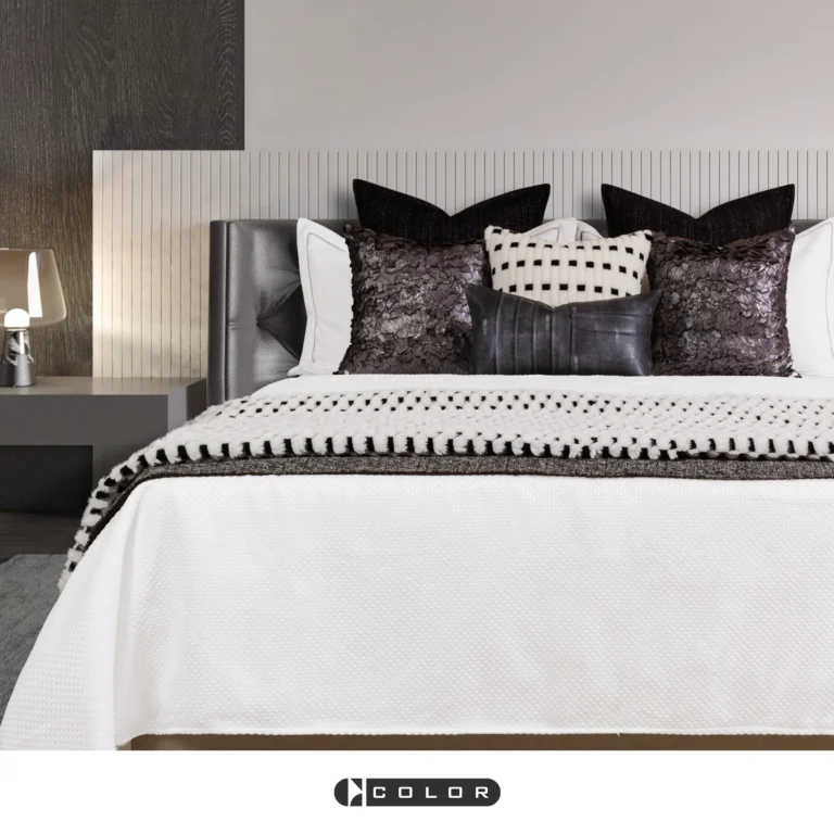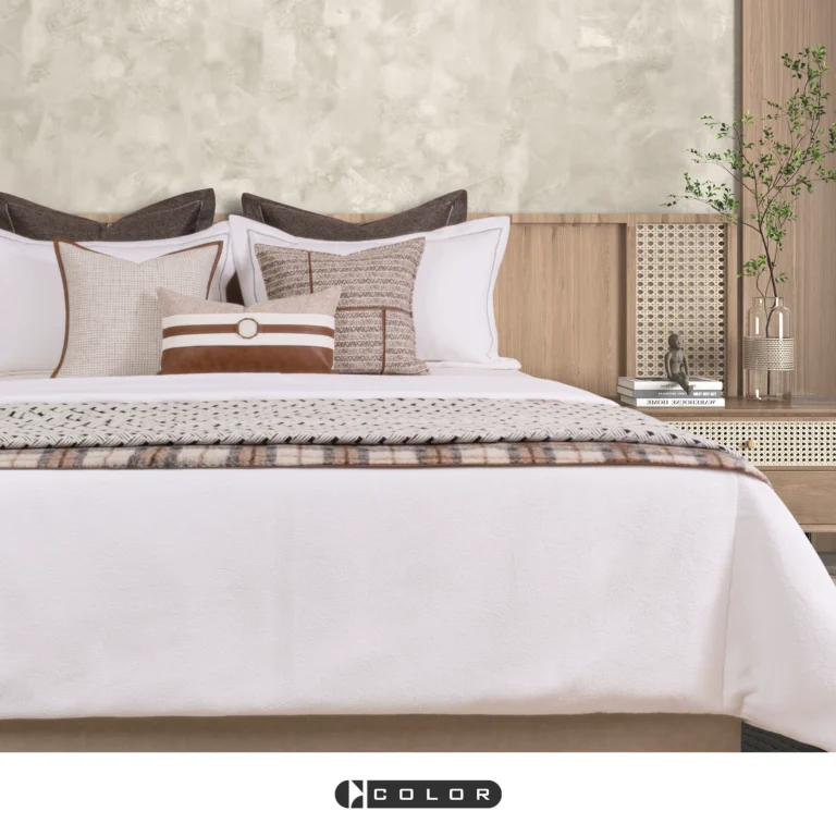 Affordable Luxury Showroom: Beige 10-Piece Bedding Set, Hotel Furniture Showroom, Bedding, Houndstooth Pillows, Throw Blankets
