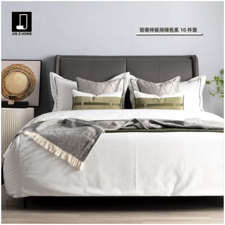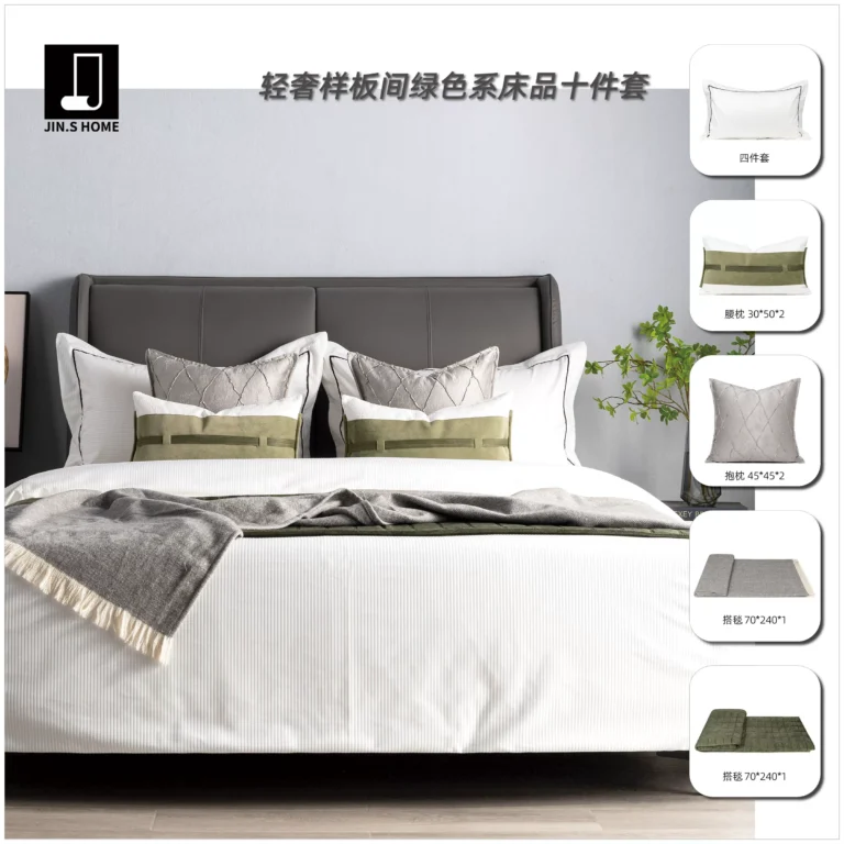 Brocade-Style Light Luxury Green 10-Piece Bedding Set for Model Homes, B&Bs, Villas, and Showrooms—High-End Multi-Piece Sets