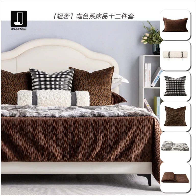 Brocade-Style Light Luxury Coffee-Orange 12-Piece Bedding Set for Model Homes, B&Bs, Villas, and Showrooms—High-End Multi-Piece Set