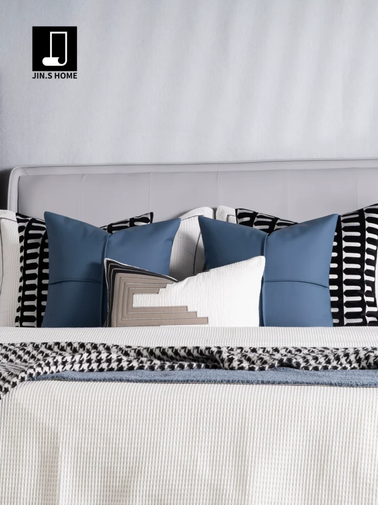 Showroom Blue-Toned Bedding Set: Modern, Light Luxury Blue Leather-Embroidered Houndstooth Throw Blanket for Villa Bedding