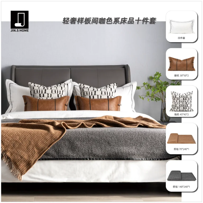 Modern Luxury-Chic Model Unit: 10-Piece Brown-Toned Bedding Set for Guesthouses and Villas—High-End Multi-Piece Bedding Sets for Showrooms