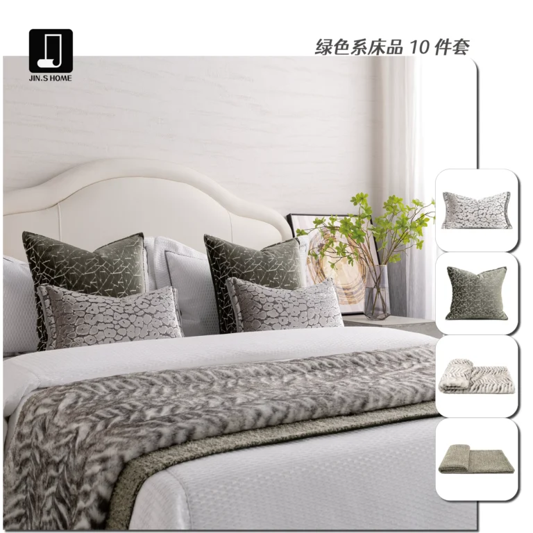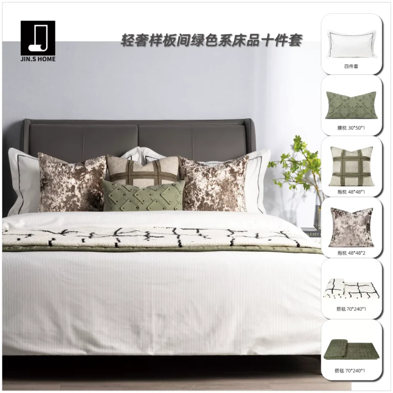Modern Luxury 10-Piece Green-Toned Bedding Set for Model Homes, Guesthouses, and Villas—High-End Multi-Piece Bedding Sets for Showrooms