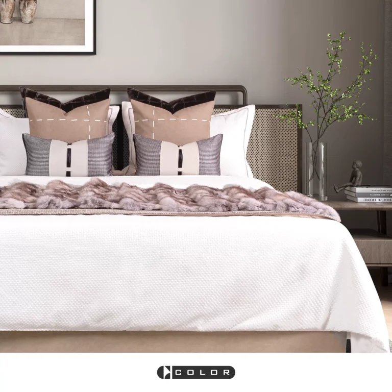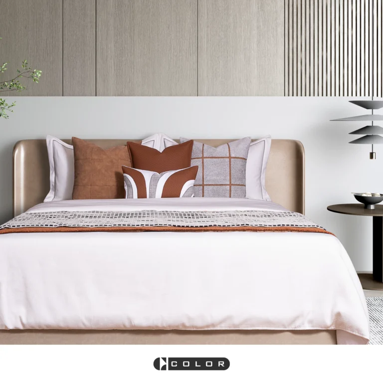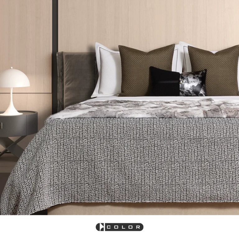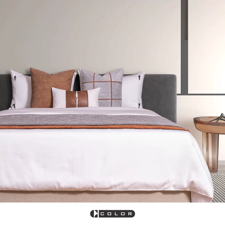 Soft Furnishings for Model Homes: Light Luxury High-End 4-Piece Bedding Set in Taupe, High-End Custom-Made Bedding with a Nine-Grid Design