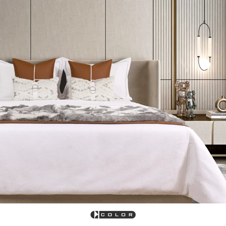 Soft Furnishings for Model Homes: Luxury Four-Piece Bedding Set with Green Woven Leather and Rabbit Fur Throw