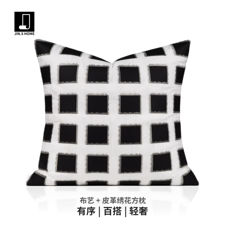 Cushions for Sofas and Living Rooms: Light Luxury, High-End, Modern Minimalist Showroom-Style Black-and-White Checkered Leather Embroidered Headboard and Armrest Cushions