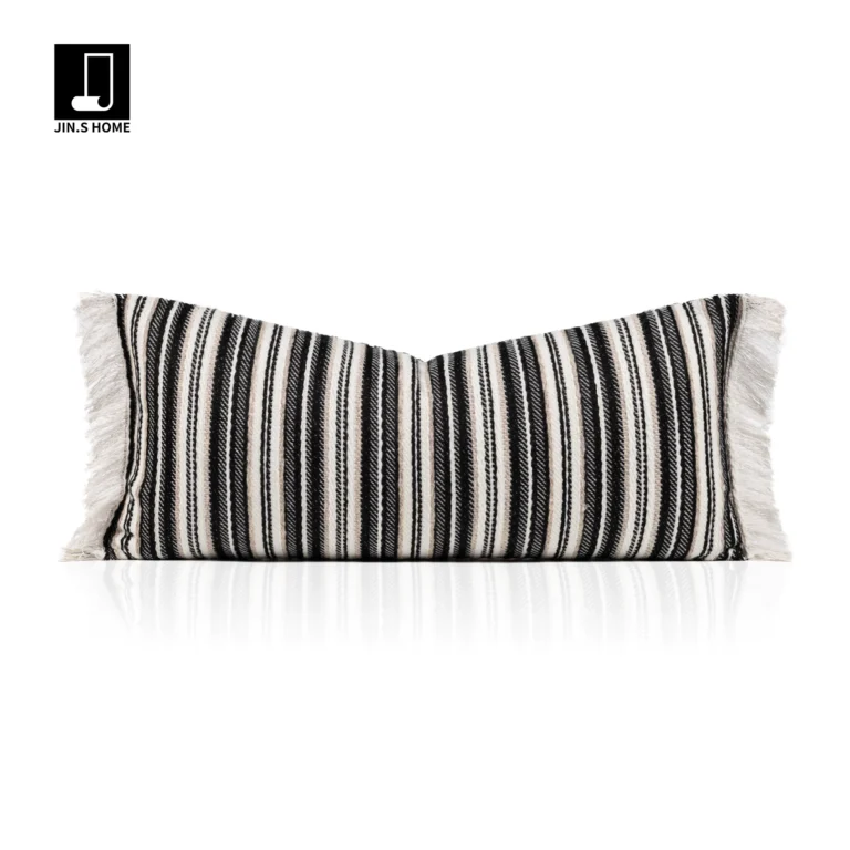 Cushion for Sofa, Living Room, Model Home, Villa: Light Luxury, Sophisticated Style, Black and White Cotton-Linen, Fringed, Tasseled, Bed Pillow, Lumbar Support Cushion
