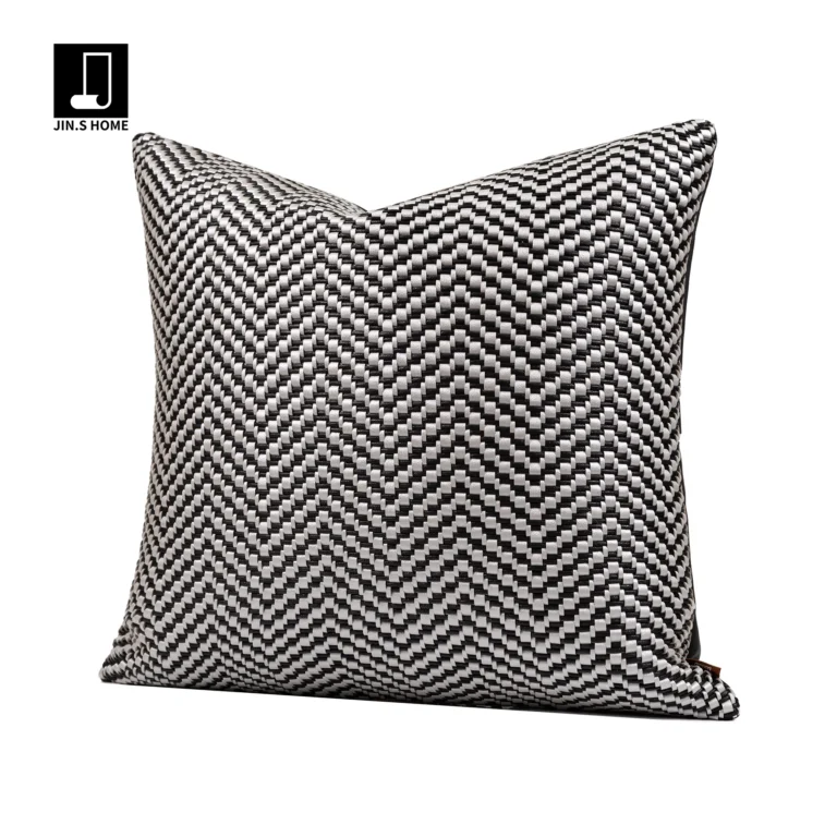Cushions for Sofas and Living Rooms: Light Luxury, High-End Gray and Black Leather-Woven Square Cushions for Model Homes and Villas—Bedside and Backrest Cushions