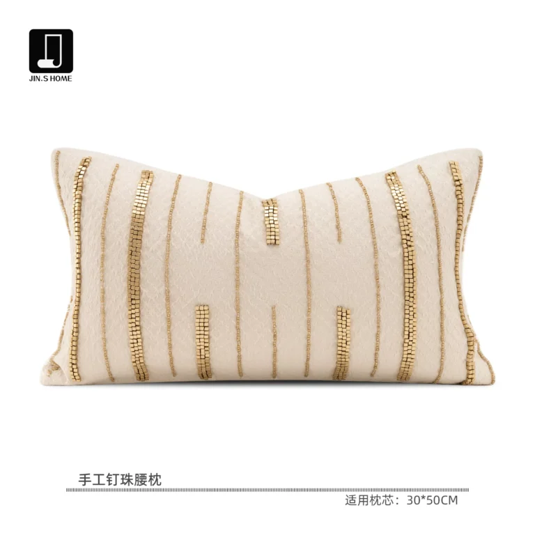 Soft furnishings, sofas, model homes, bay windows, modern, Nordic, Italian, light luxury, hand-beaded, gold metallic throw pillows