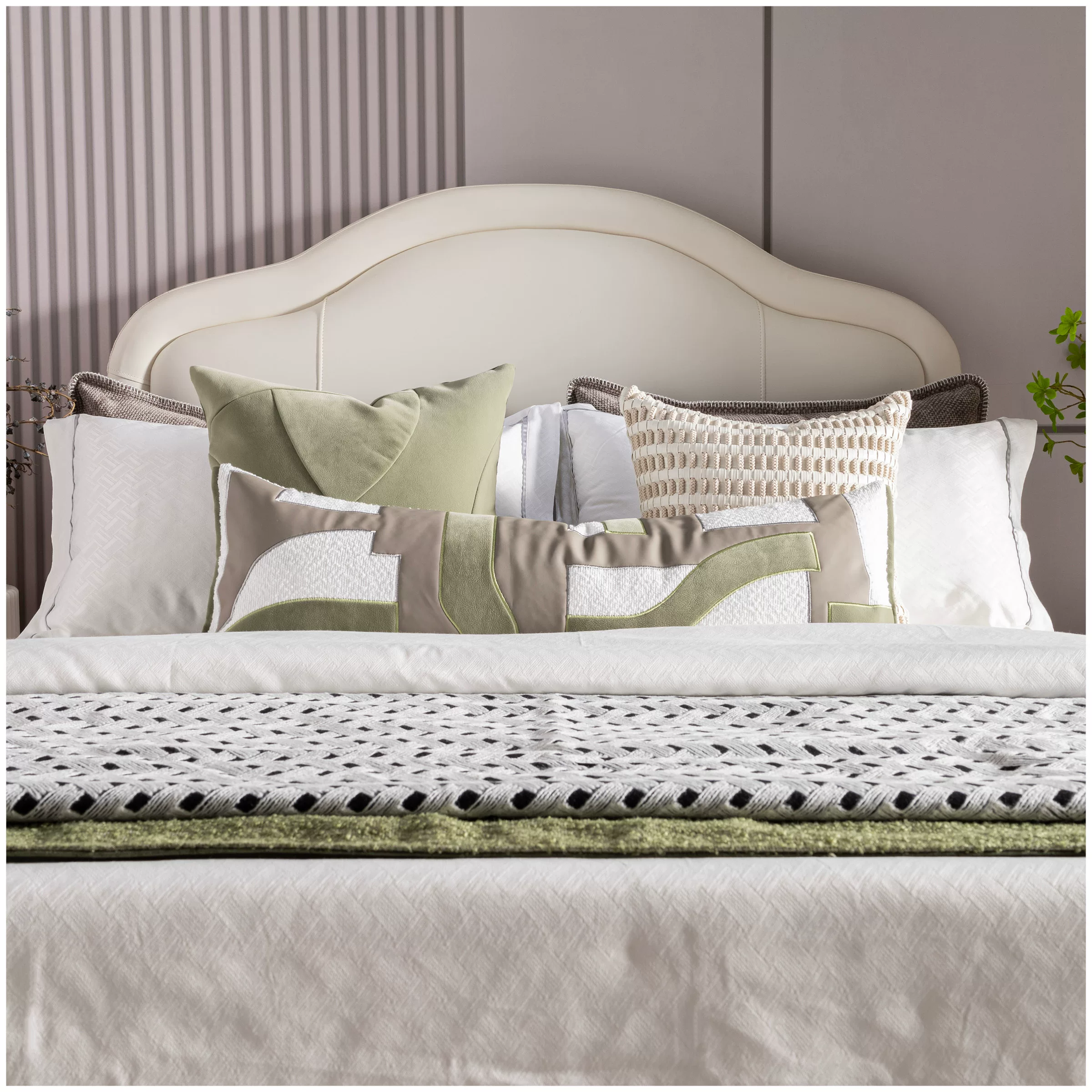 11-piece Wabi-Sabi-style bedding set in green – patterned bedding for showrooms, vacation rentals, and villas – high-quality multi-piece sets