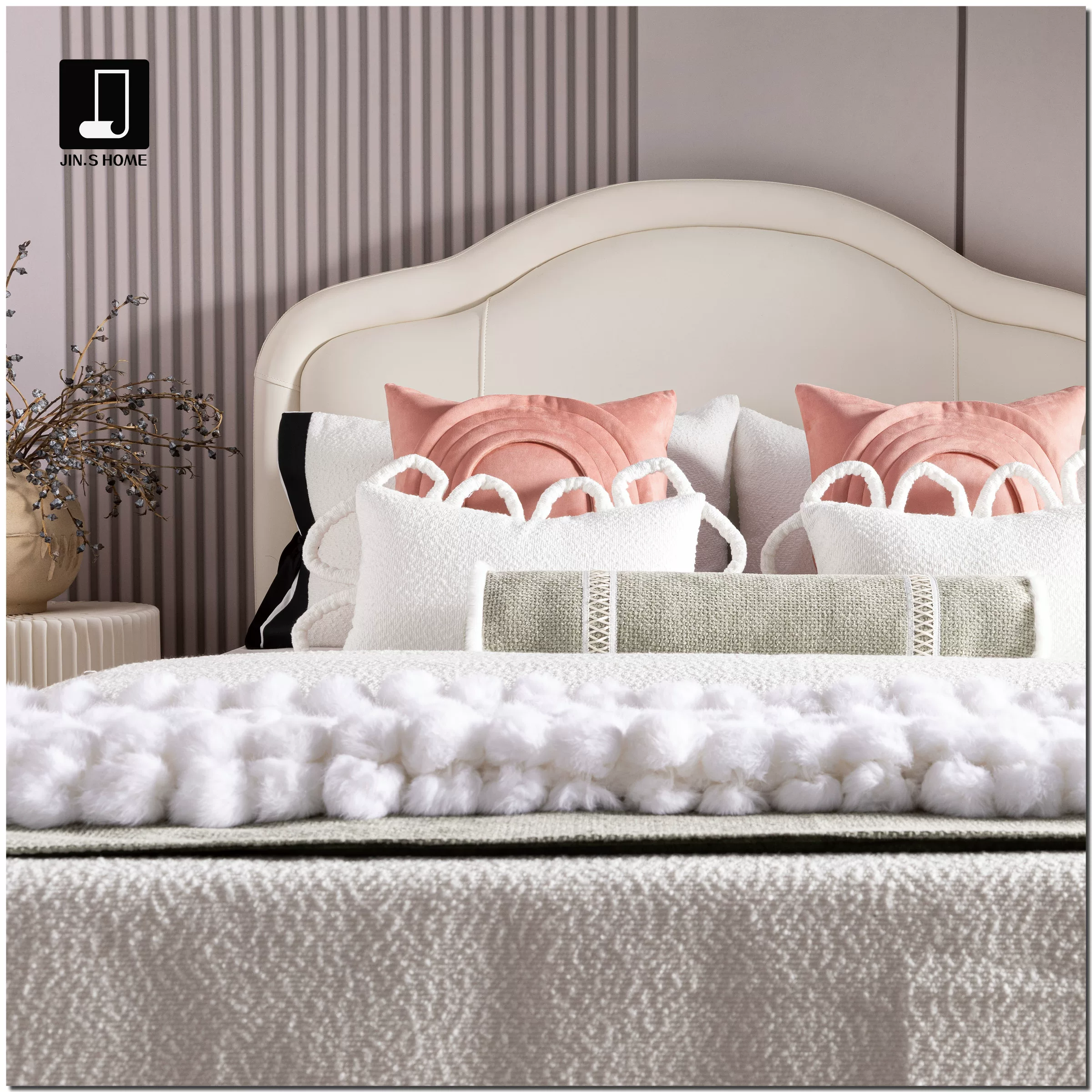 Luxury 10-Piece Bedding Set for Model Homes: Light Luxury, High-End, Eco-Friendly Woven Leather and Rabbit Fur Throw Blanket