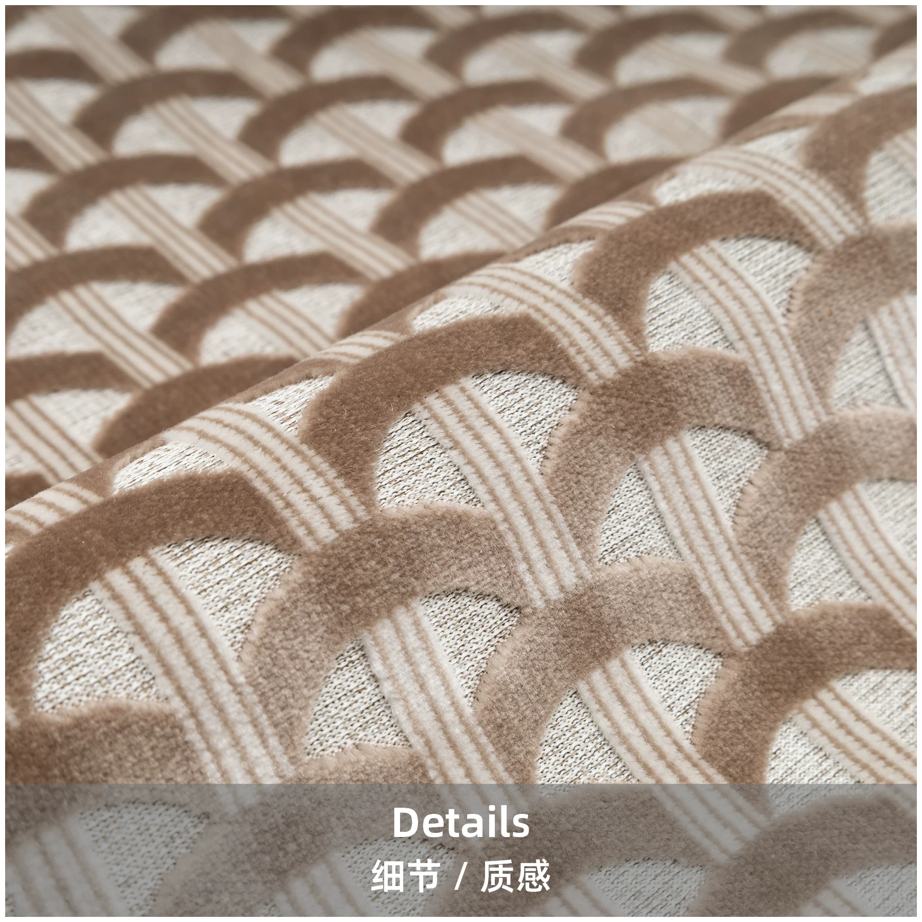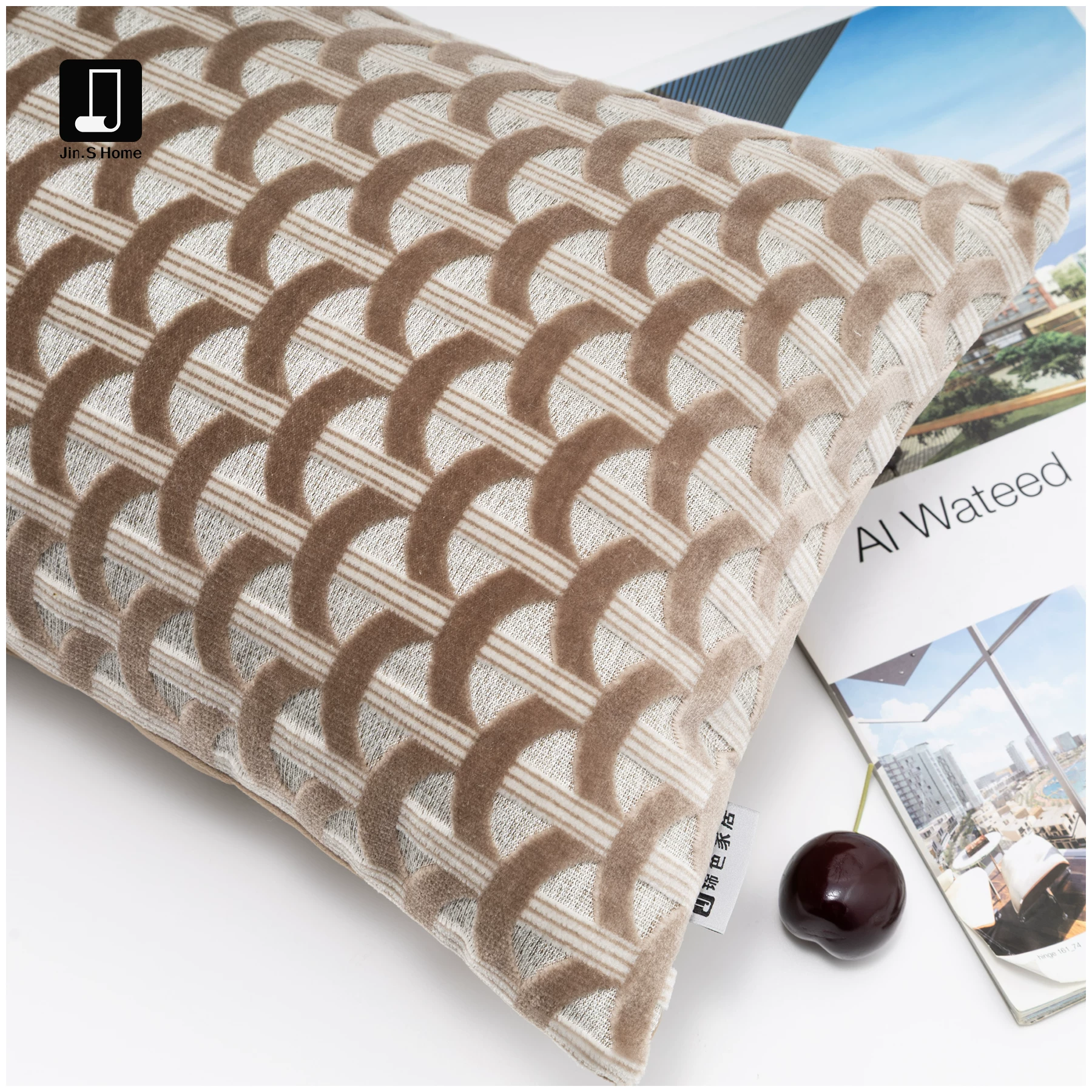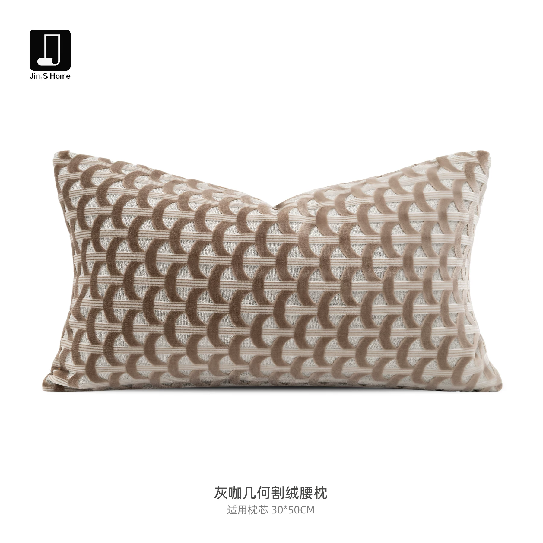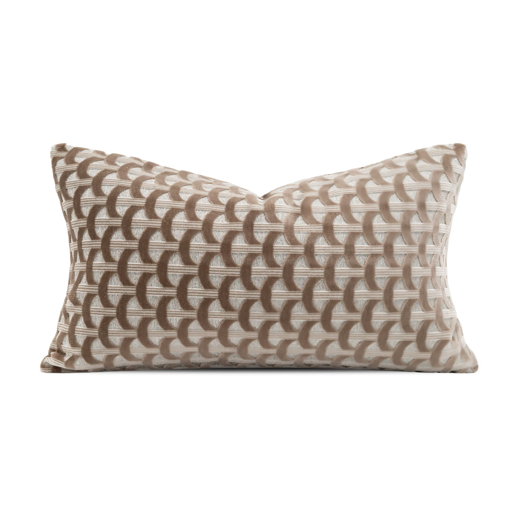 Brocade and taupe-colored cut-pile accent pillow; living room sofa lumbar pillow; model home and showroom display; bedside cushion; light luxury-style pillowcase