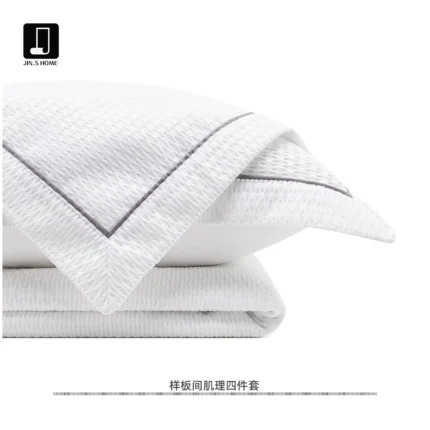 Jinshi Soft Furnishings Showroom: Italian-inspired, light luxury white-striped woven-texture high-end custom bedding four-piece set