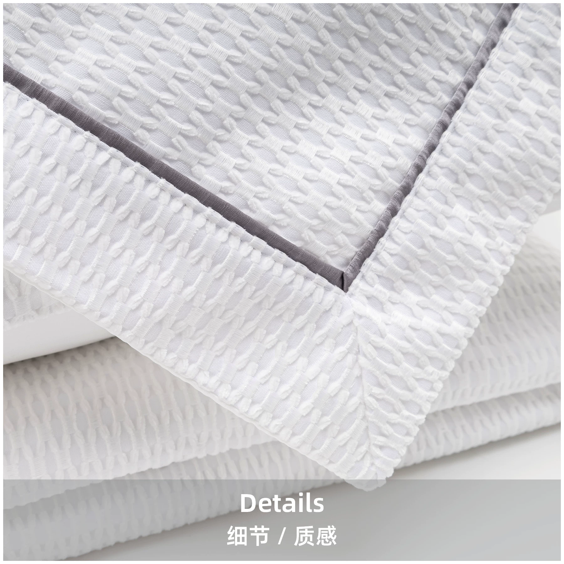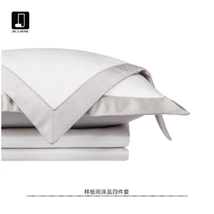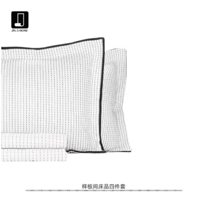 Jinshi Soft Furnishings Showroom: Italian-inspired, light luxury white-striped woven-texture high-end custom bedding four-piece set