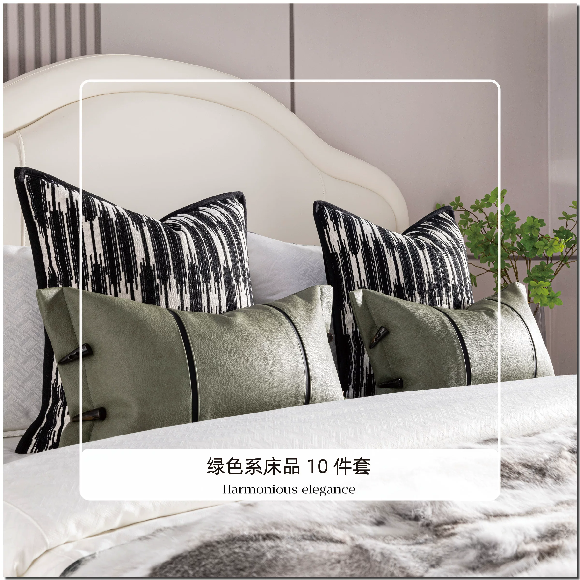 Brocade-Style Light Luxury Green 10-Piece Bedding Set for Model Homes, B&Bs, Villas, and Showrooms—High-End Multi-Piece Sets