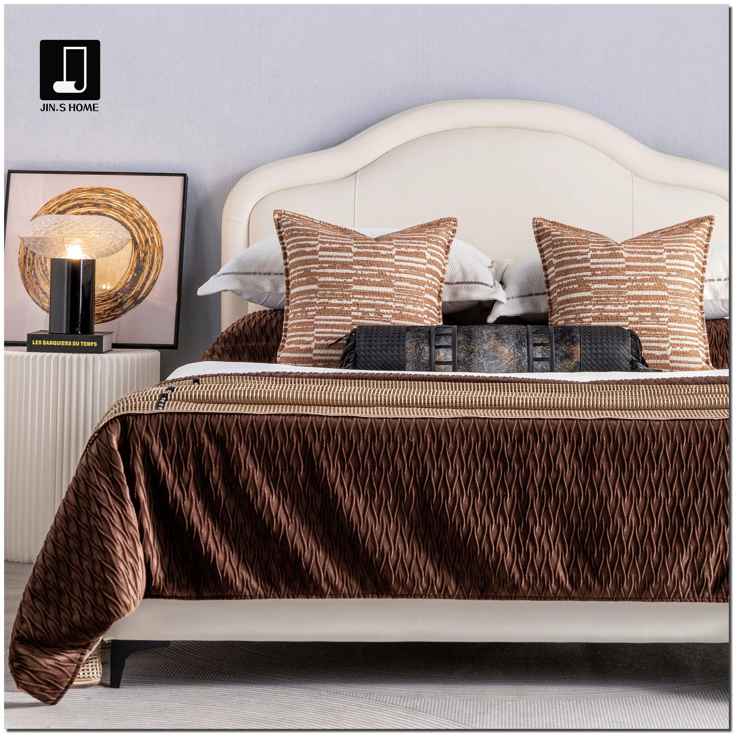 Luxury 10-Piece Bedding Set for Model Homes: Light Luxury, High-End, Eco-Friendly Woven Leather and Rabbit Fur Throw Blanket
