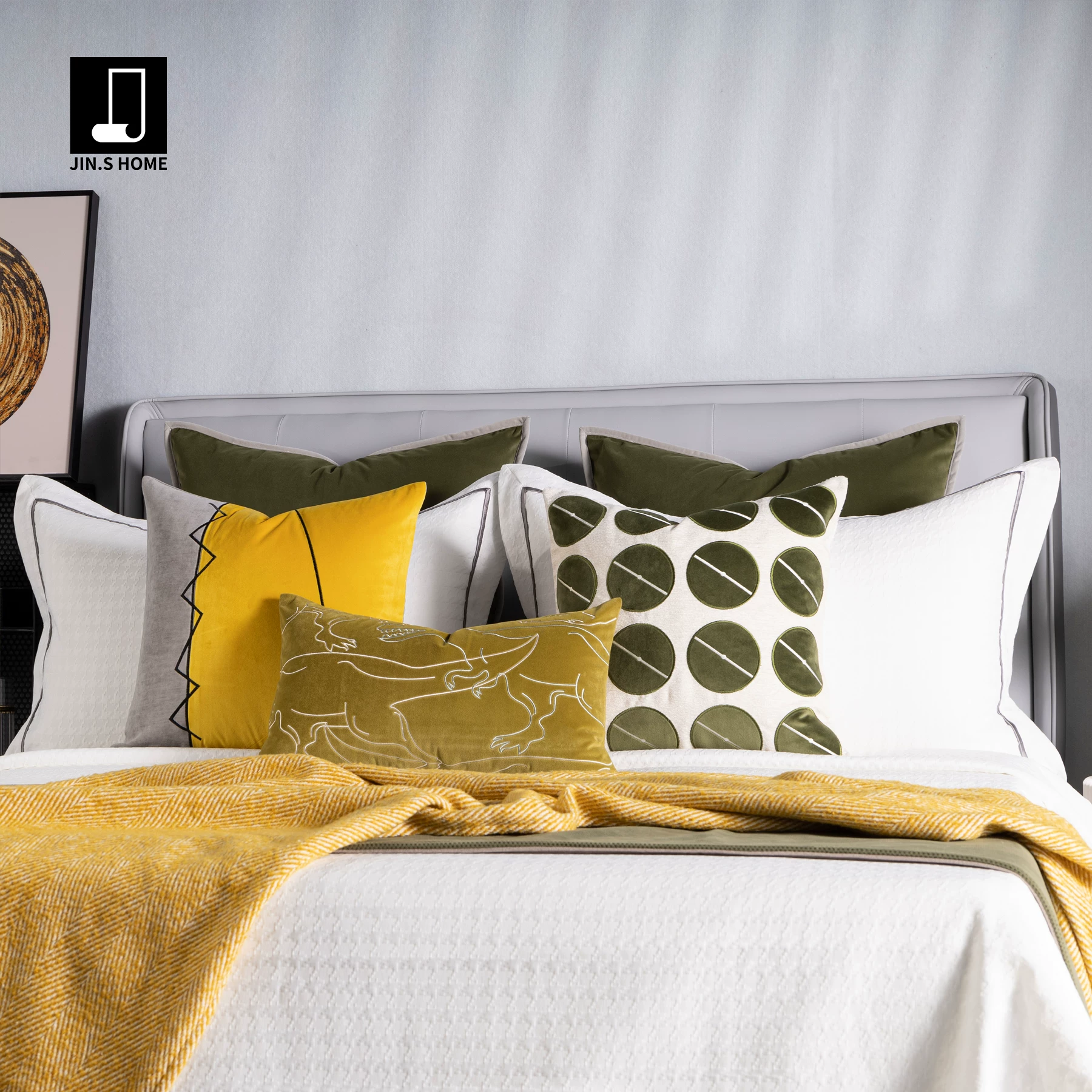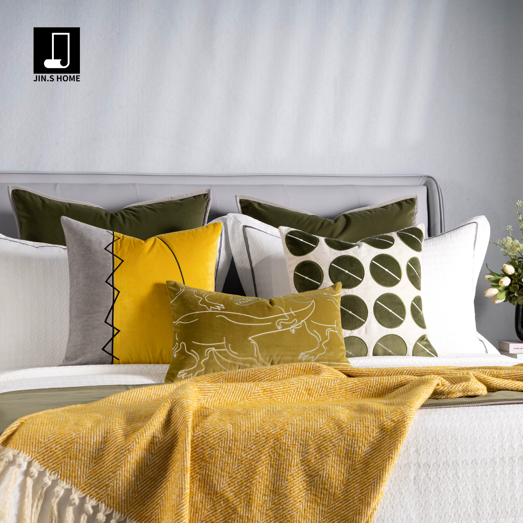 12-Piece Green-Toned Children’s Room Soft Furnishings Set: Minimalist Modern Instagram-Style Pillows, Throws, and Bedding