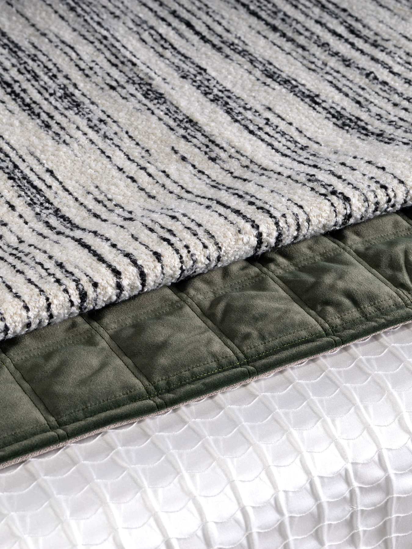 12-Piece Green-Toned Bedding Set for Model Homes: Italian-Style Luxury Woven Square Pillows and Rectangular Cushions