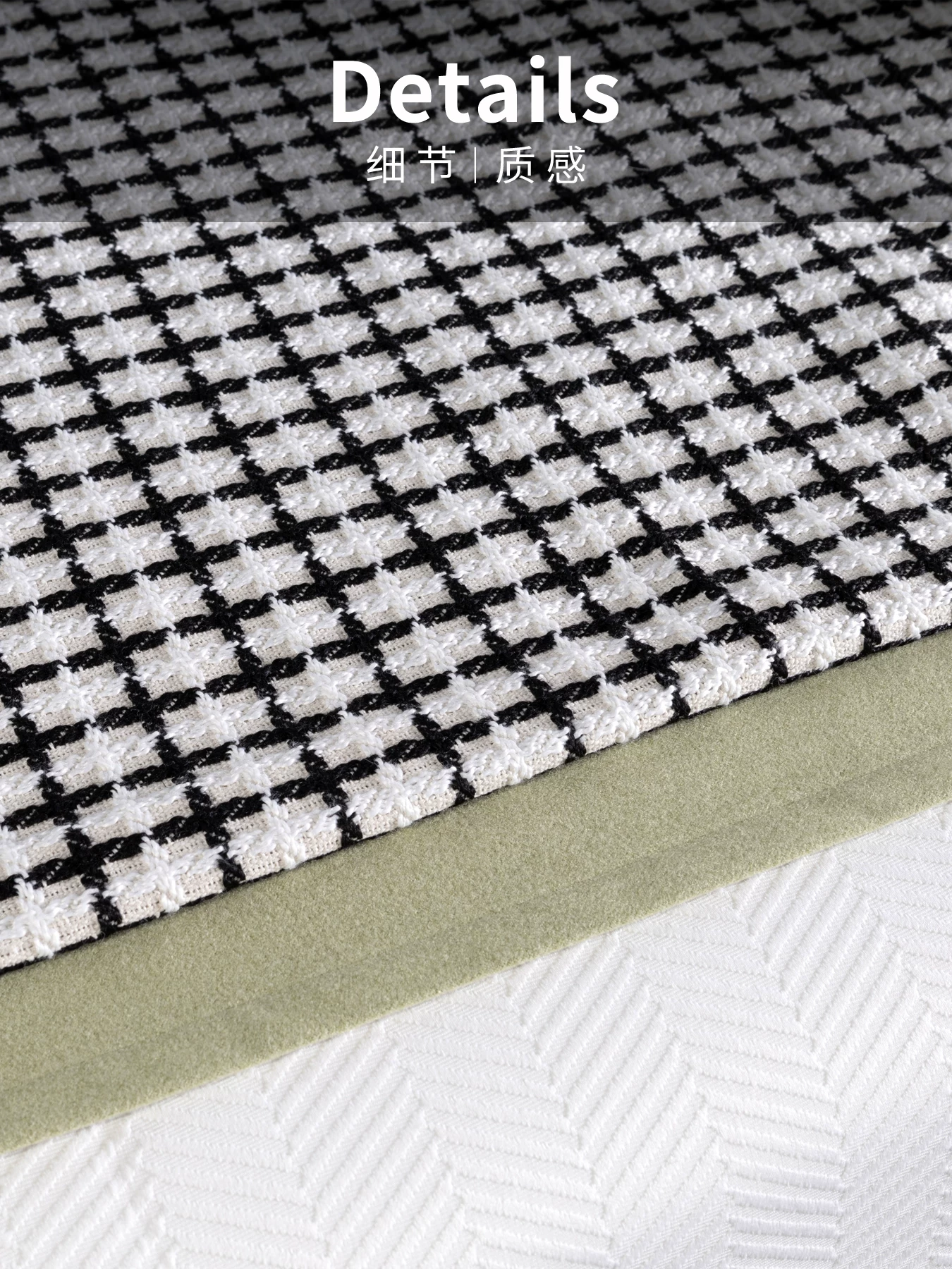 Modern Nordic Showroom: Wool Throw, Hotel-Style Italian Luxury Sofa Cover, Beige Striped Footboard Throw