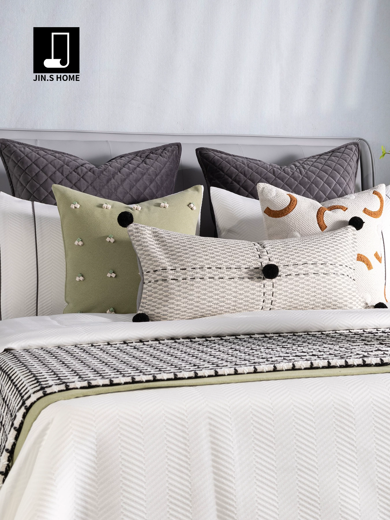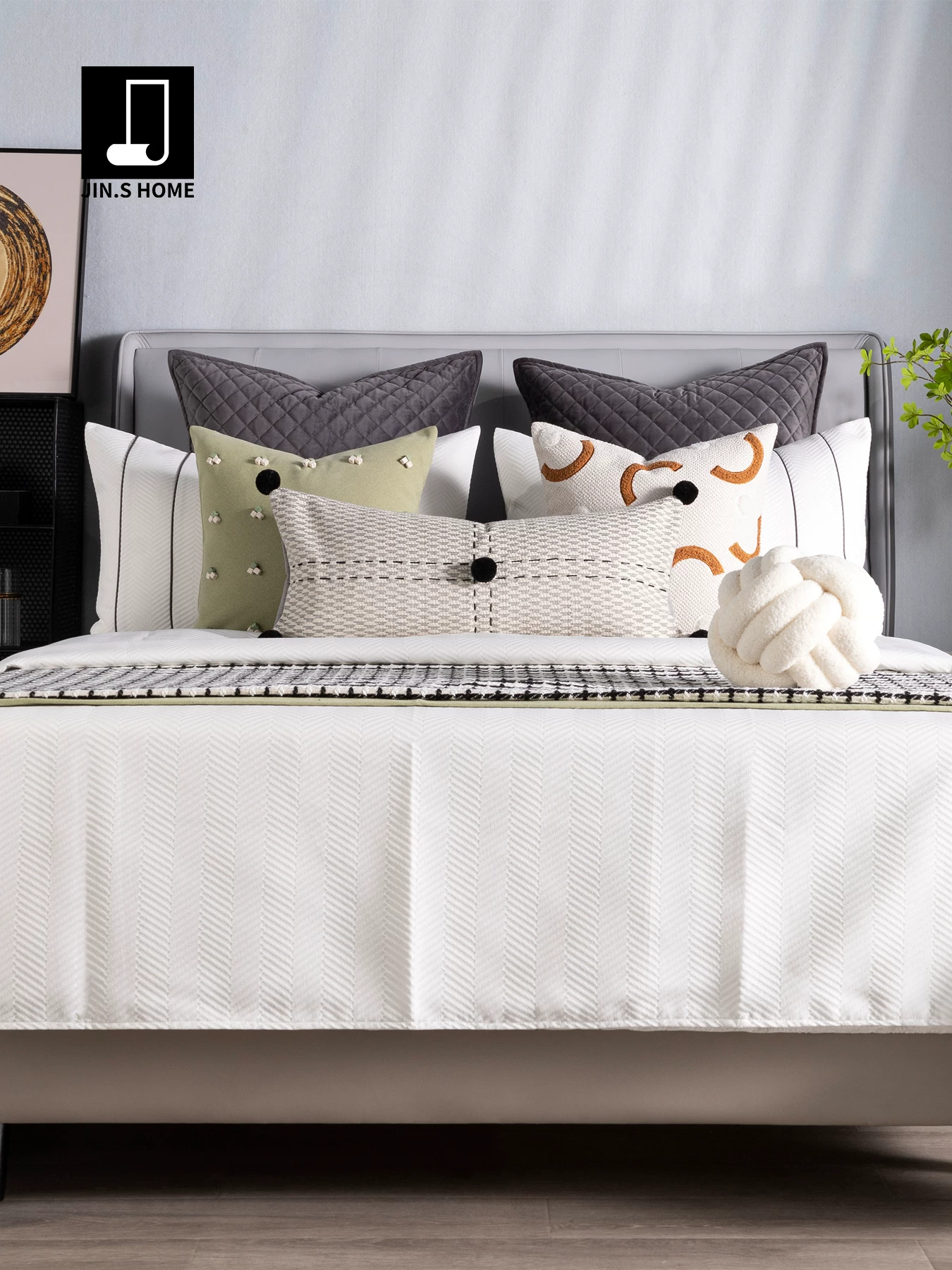 Soft furnishings, sofa samples, children’s room, bay window, modern, Nordic, Italian, light luxury, blue, microphone-patterned embroidered throw pillows