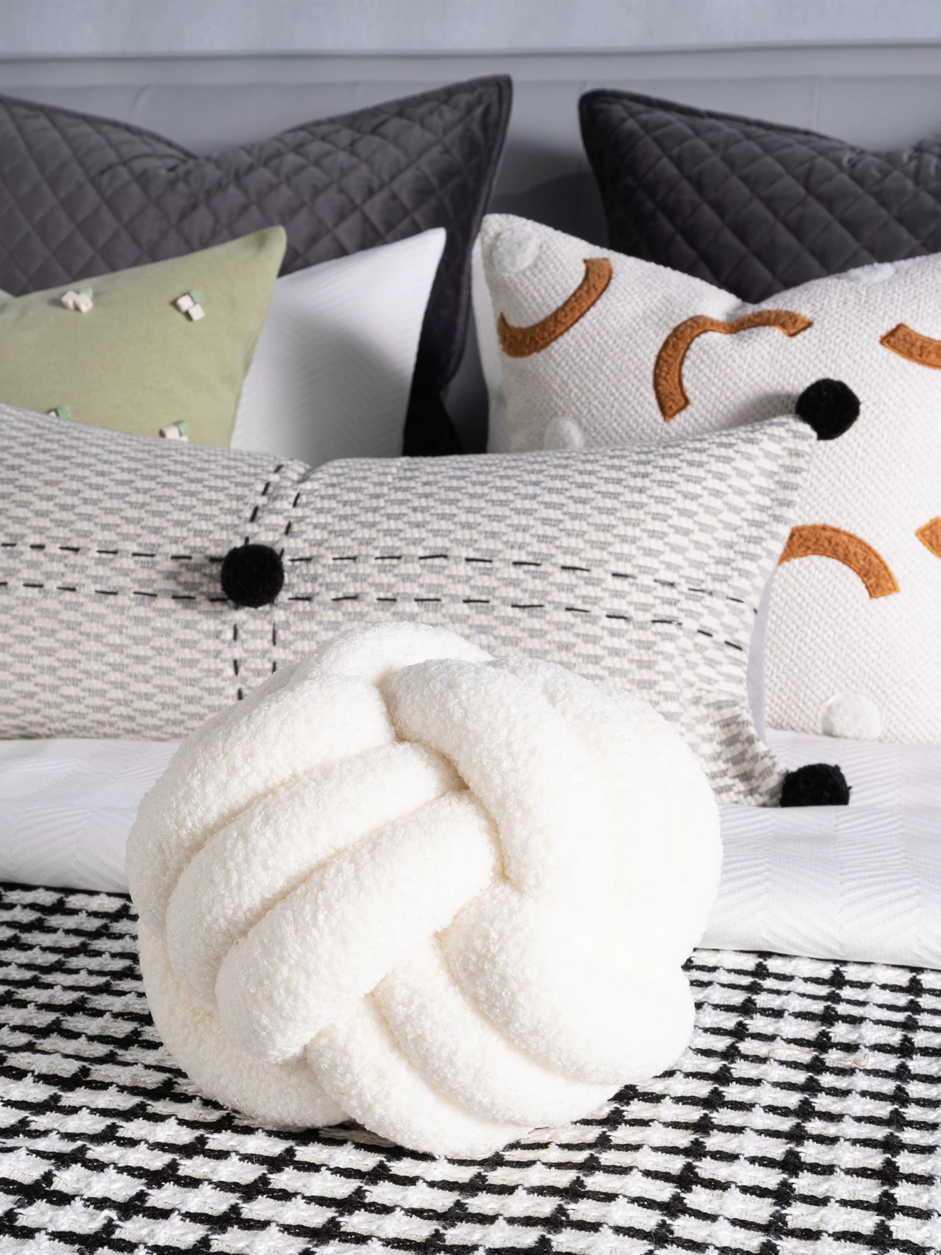Soft Furnishings for Model Homes: Boys’ Room – Baseball-Themed Pillows in Blue and Brown with Embroidery (Bedside and Decorative Pillows)