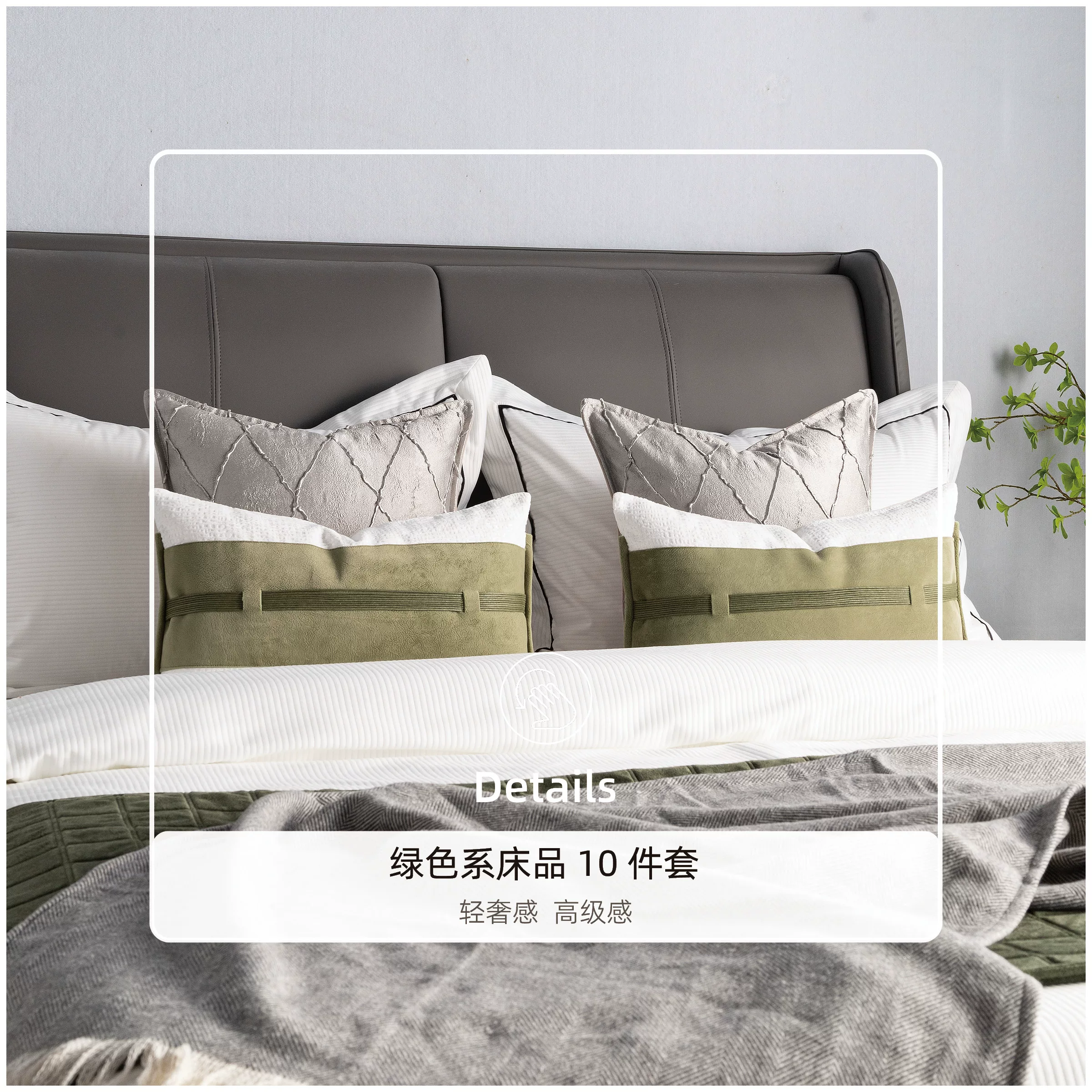 Brocade-Style Light Luxury Green 10-Piece Bedding Set for Model Homes, B&Bs, Villas, and Showrooms—High-End Multi-Piece Sets