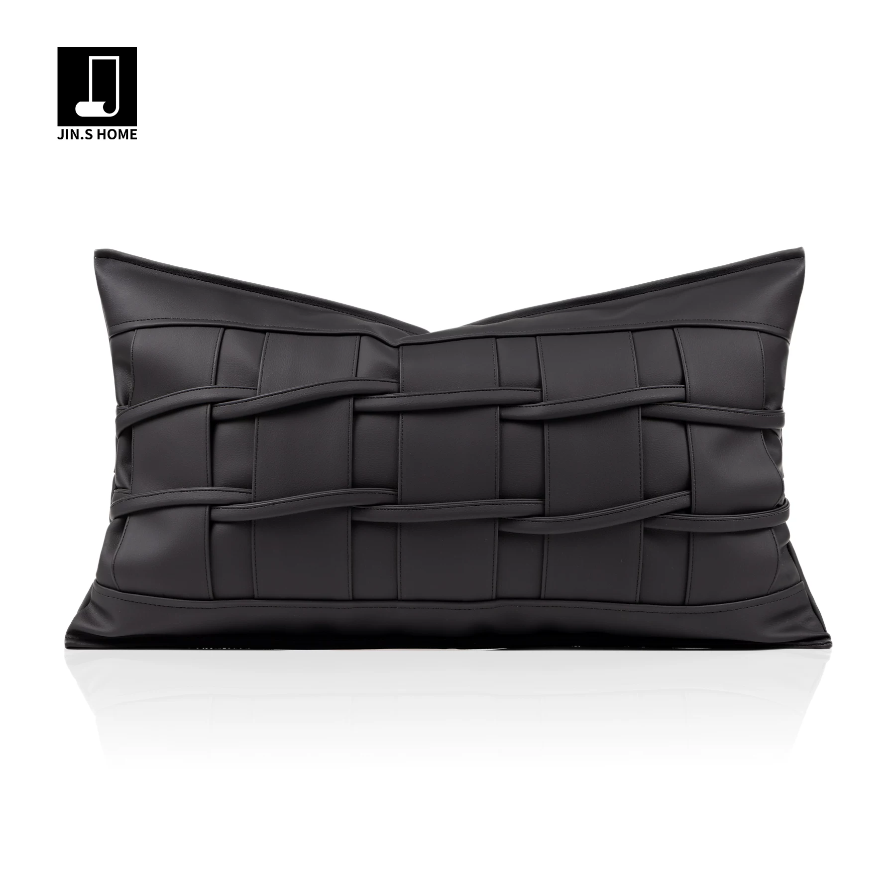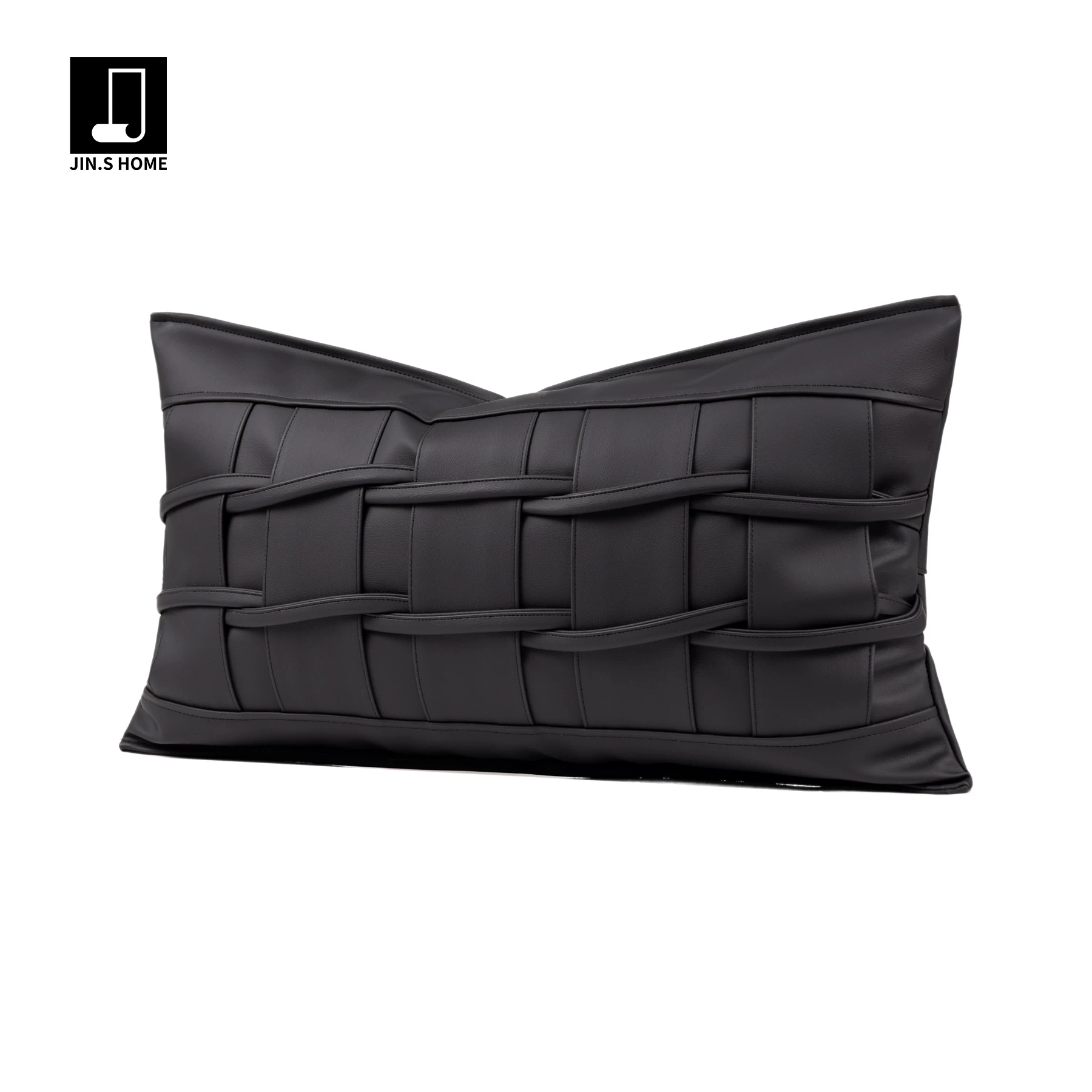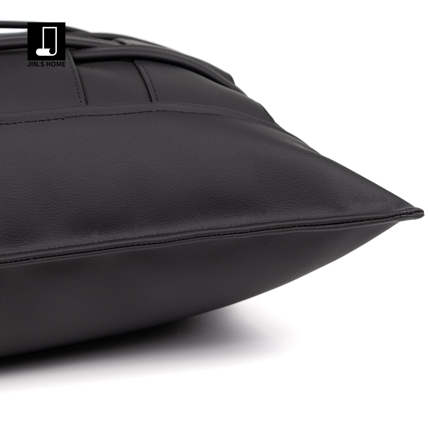 Black Leather Hand-Woven Lumbar Pillow for Sofas and Living Rooms: A Touch of Luxury for Showrooms and Villas