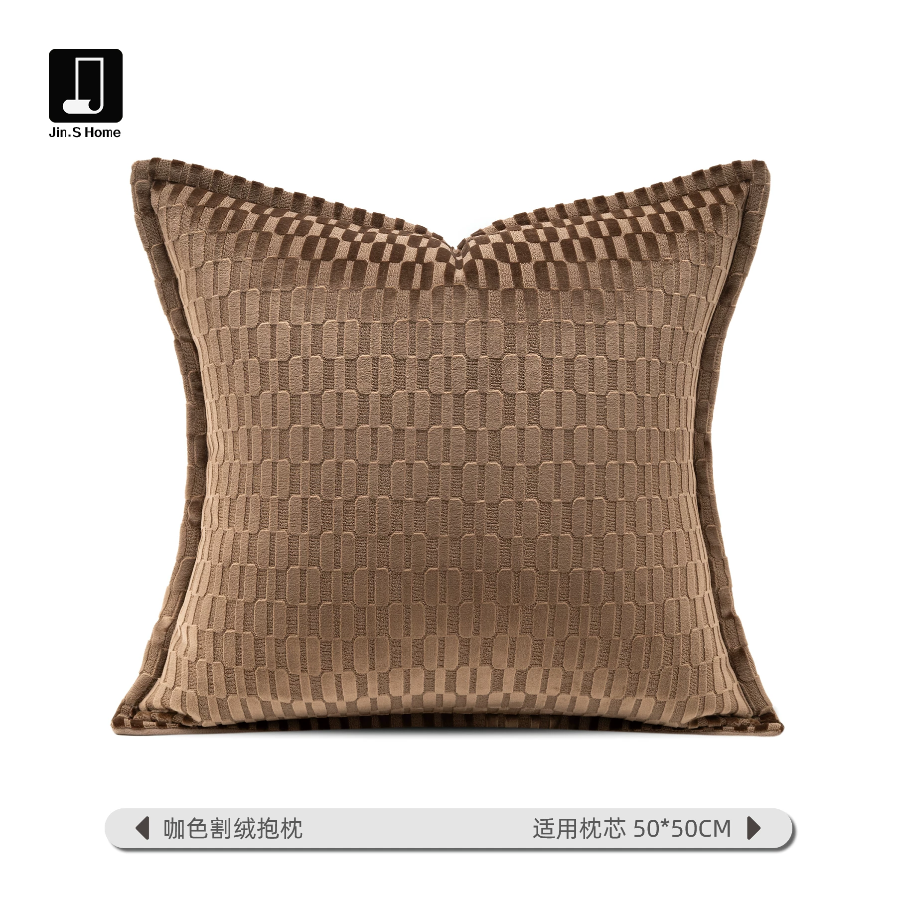 Velvet Deep Brown Cushions: Light Luxury Living Room Sofa Cushions with Wavy Shag Design—Model Home Cushions, Showroom Cushions, and Cushion Covers