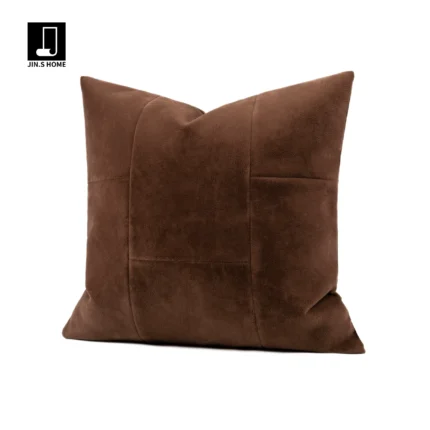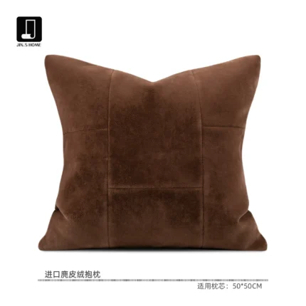 Cushion for Sofa and Living Room: Light Luxury, High-End Imported Brown Deer Suede Patchwork Square Pillow for Model Homes and Bedside Cushions