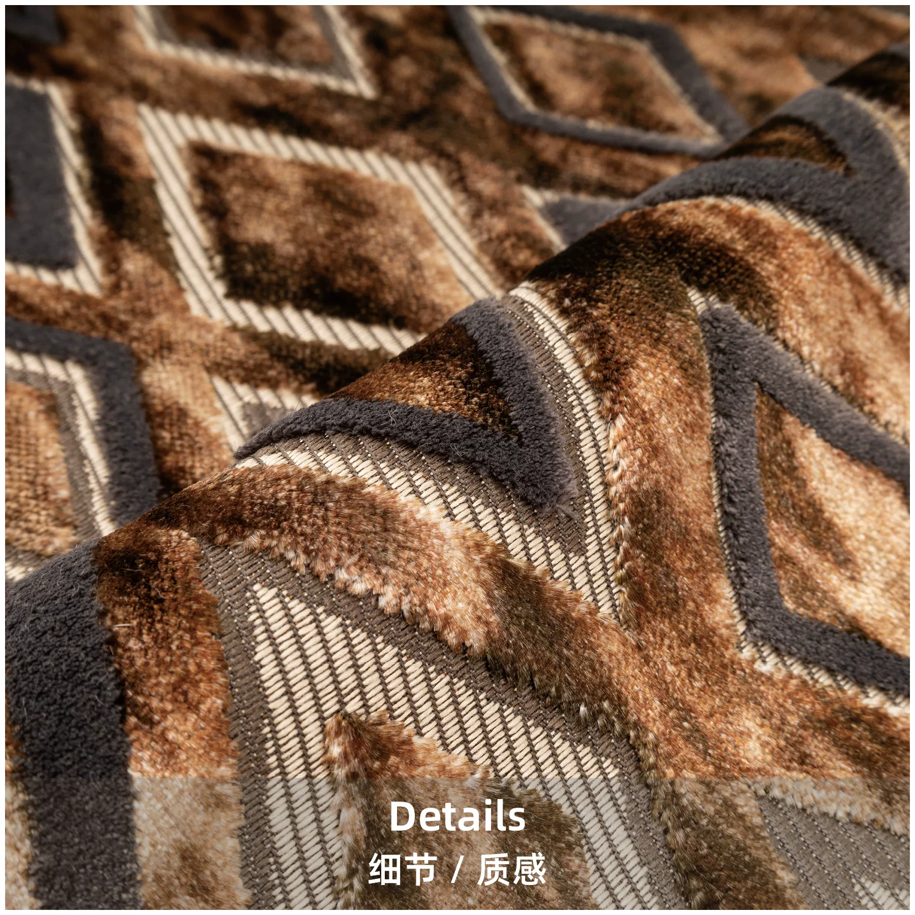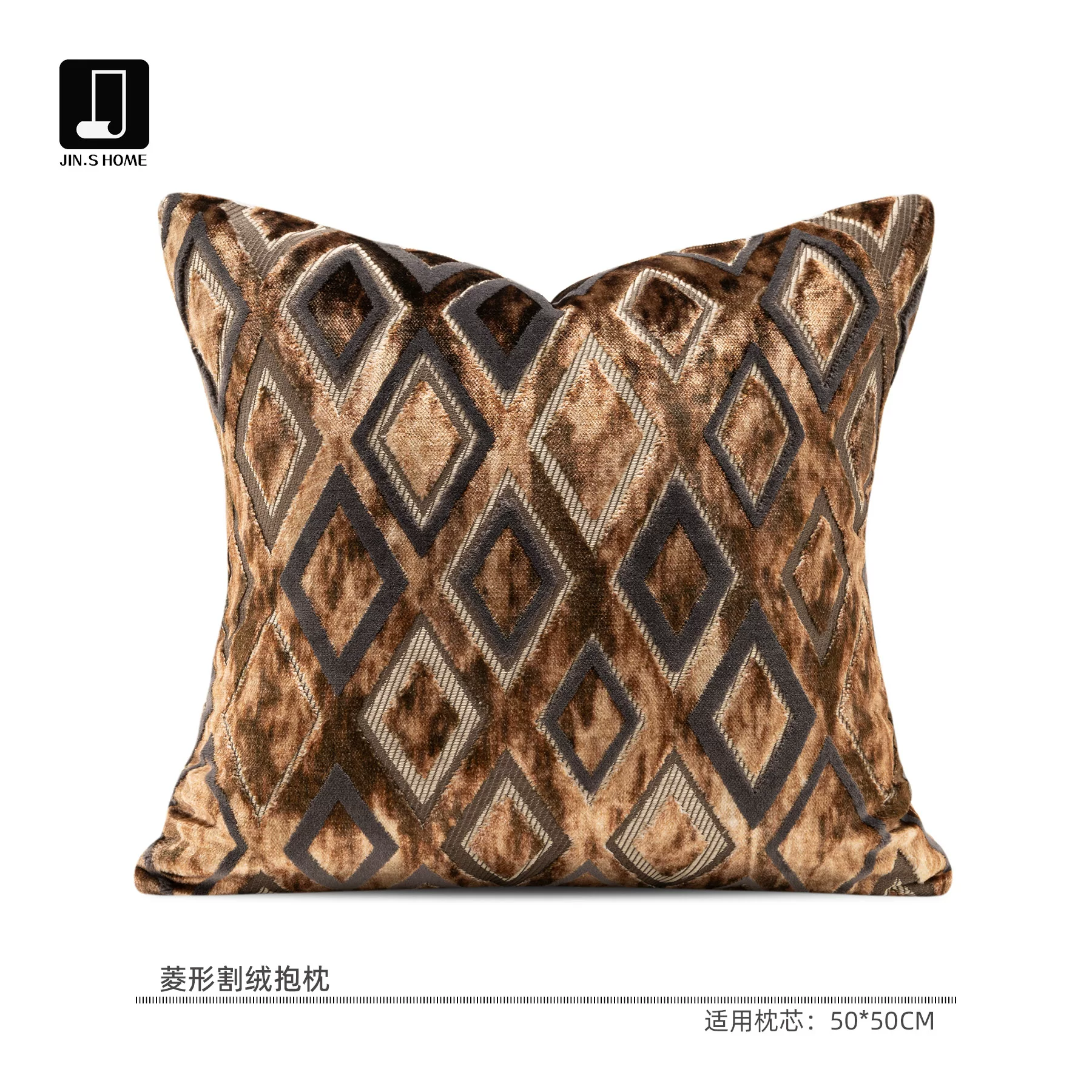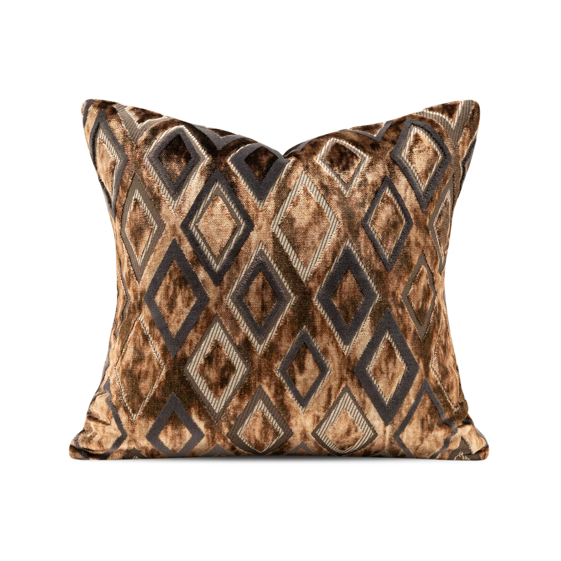 Brocade-Patterned, Vintage-Style, Coffee-Brown, Diamond-Quilted Velvet Cushion Covers for High-End Villa Living Room Sofas and Hotel Bedside Pillows