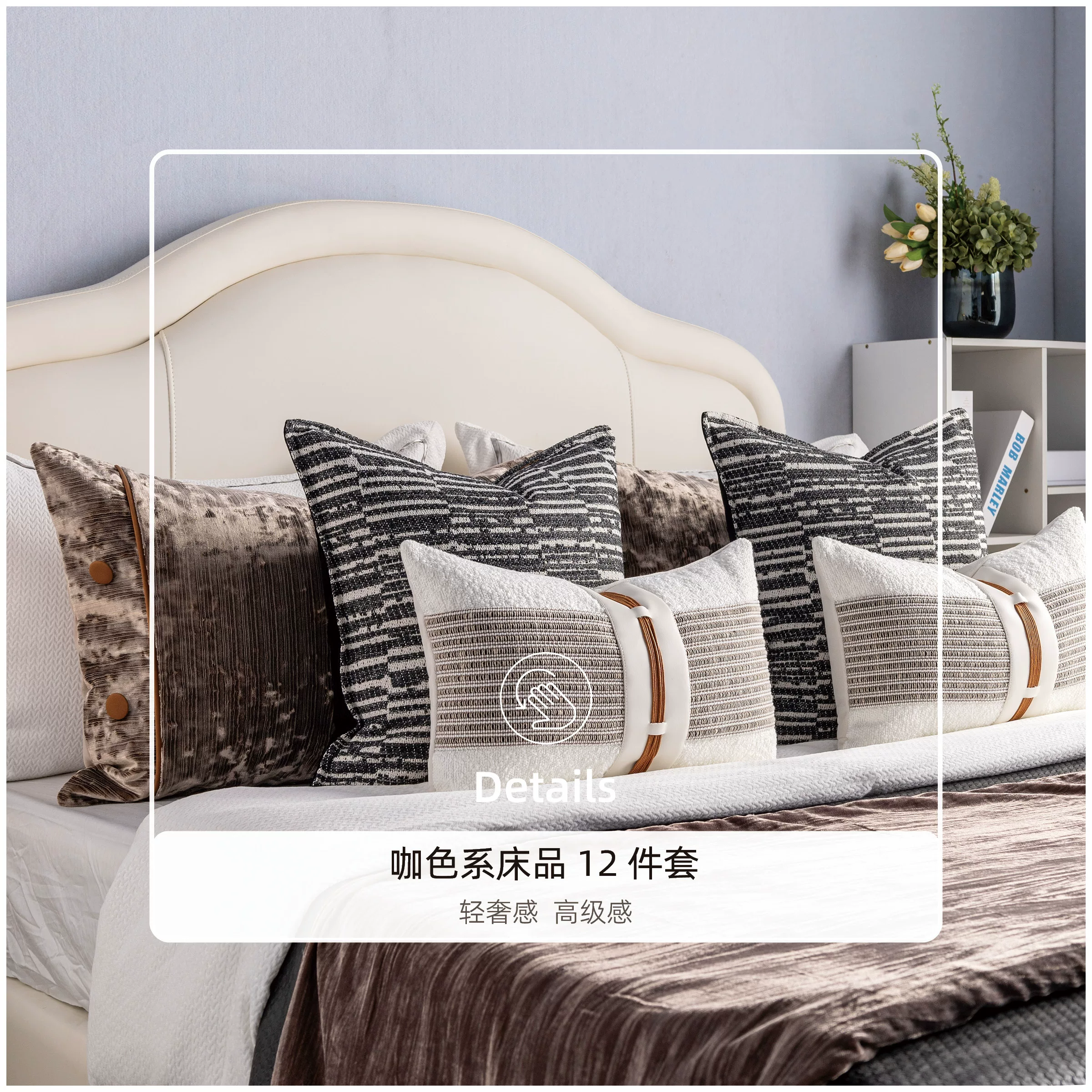 11-Piece Set of Elegant, Light-Luxury Beige Bedding: Model Room, B&B, Villa, Showroom, High-End Multi-Piece Sets