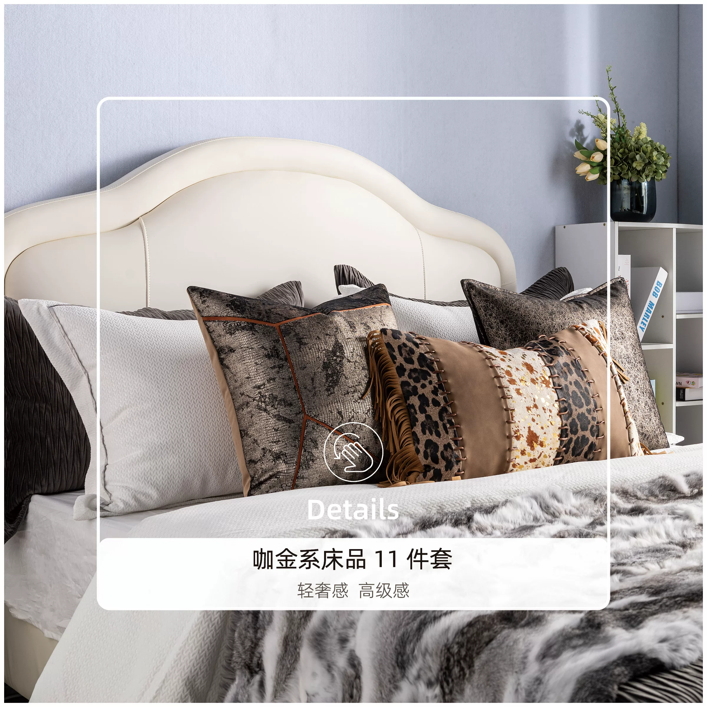Elegant, Lightly Luxurious Showroom: 11-Piece Coffee-Colored Bedding Set—Hotel-Quality Bedding for Villa Showrooms, Multi-Piece Sets with a Sophisticated Look