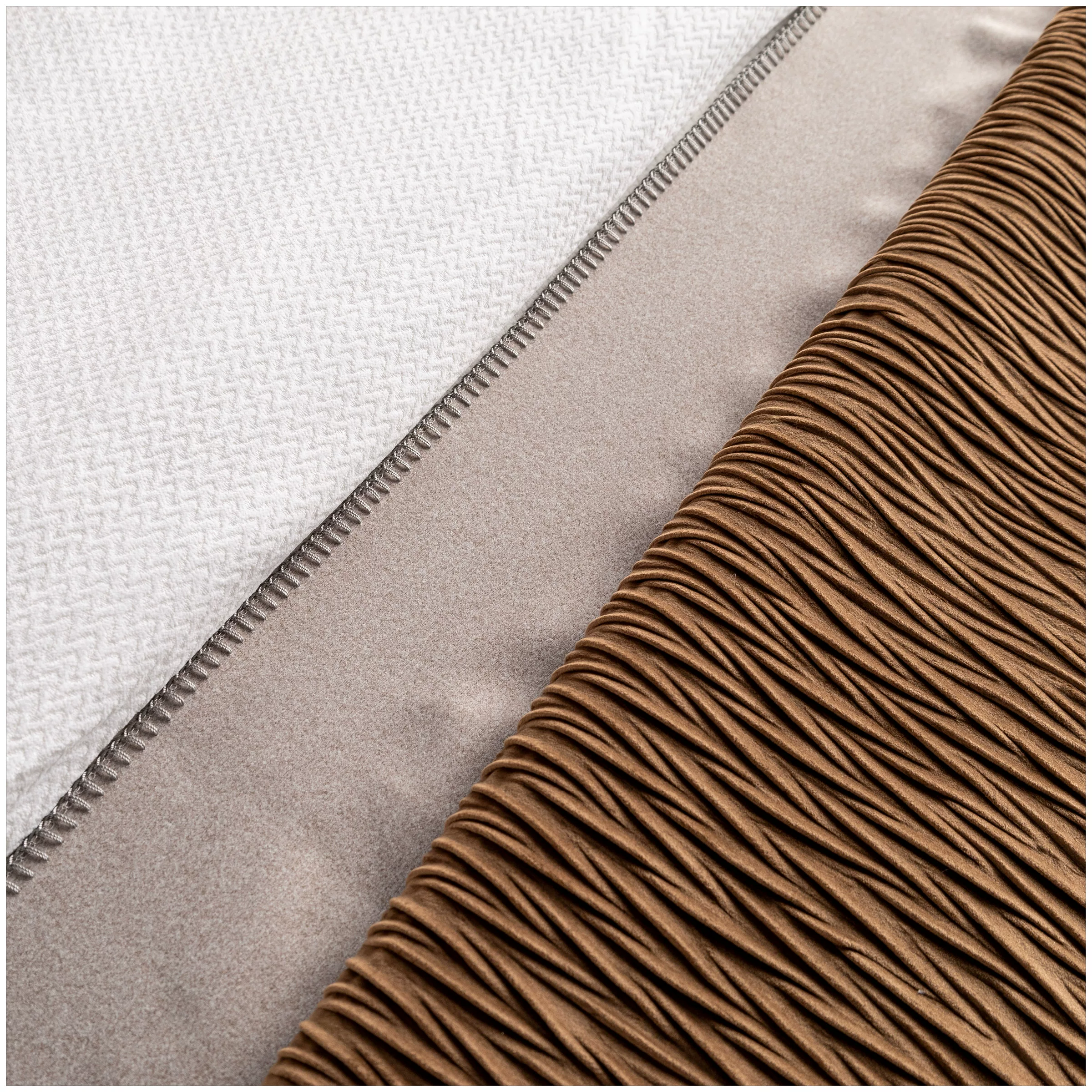 10-piece bedding set in shades of brown for model homes – upscale Italian hotel-style bedding with a bedspread, pillows, and pillowcases