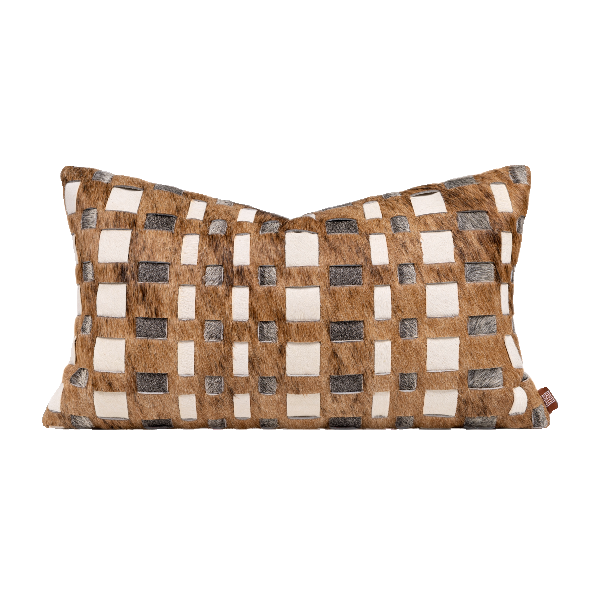 Coffee-colored, high-end, luxury-style woven genuine horsehair lumbar cushion for sofas and living rooms; model home and villa bedside cushion