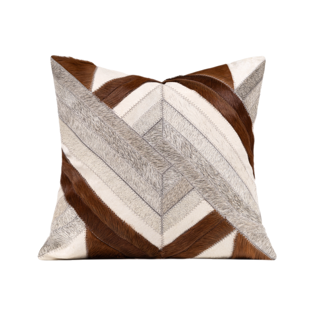 Coffee-colored, high-end, luxury-style woven horsehair square throw pillow for sofas and living rooms; model home and villa bedside cushion