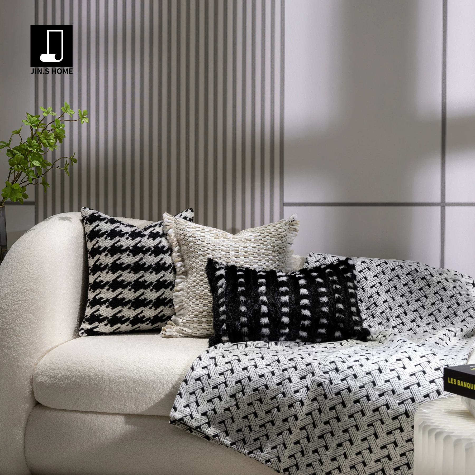 Showroom Sofa Living Room Light Luxury High-End Black and White Shag Pillows Hotel Villa Bay Window Bedside Cushions Pillow Covers