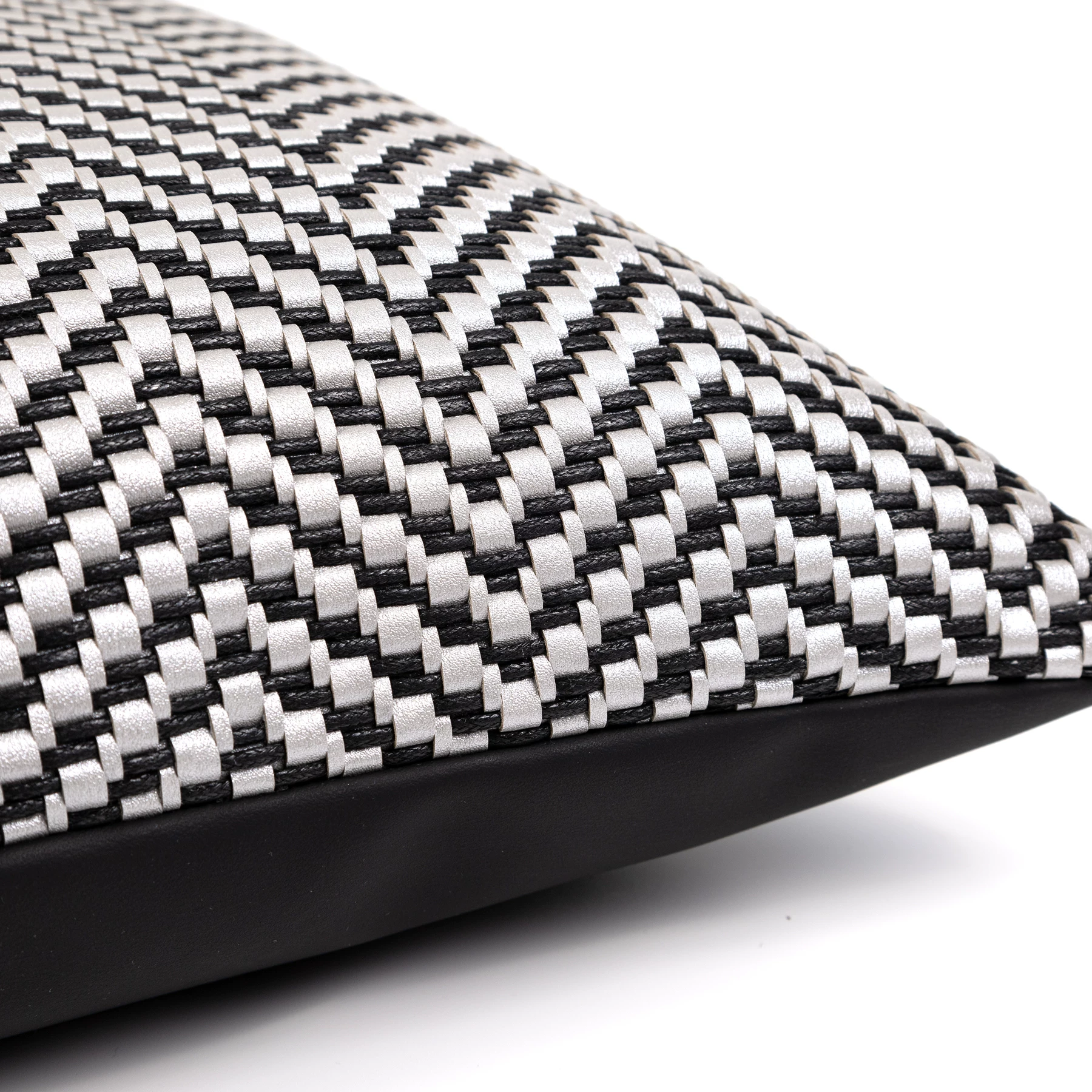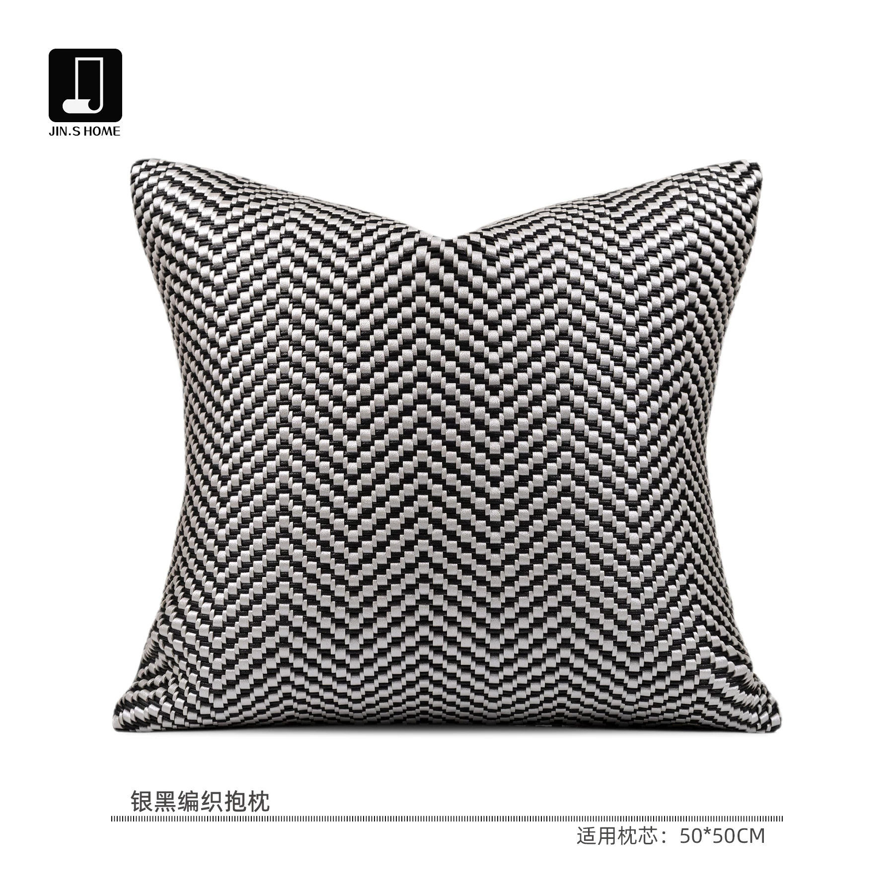 Cushions for Sofas and Living Rooms: Light Luxury, High-End Gray and Black Leather-Woven Square Cushions for Model Homes and Villas—Bedside and Backrest Cushions