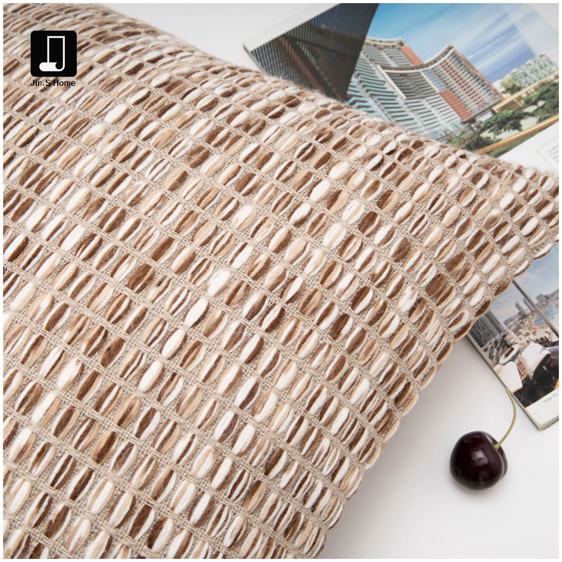 Cushions for Sofas and Living Rooms: Minimalist New Chinese-Style Modern Showroom, Light Luxury Light Brown Cotton-Linen Textured Cushions