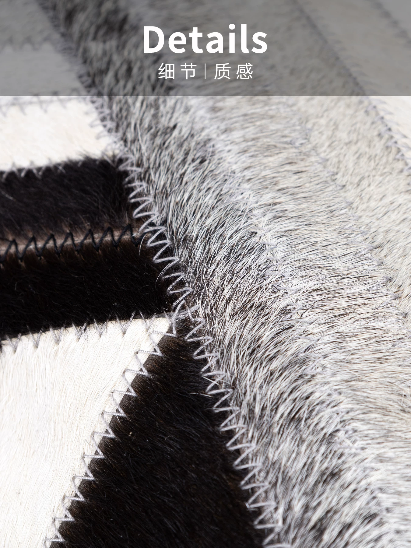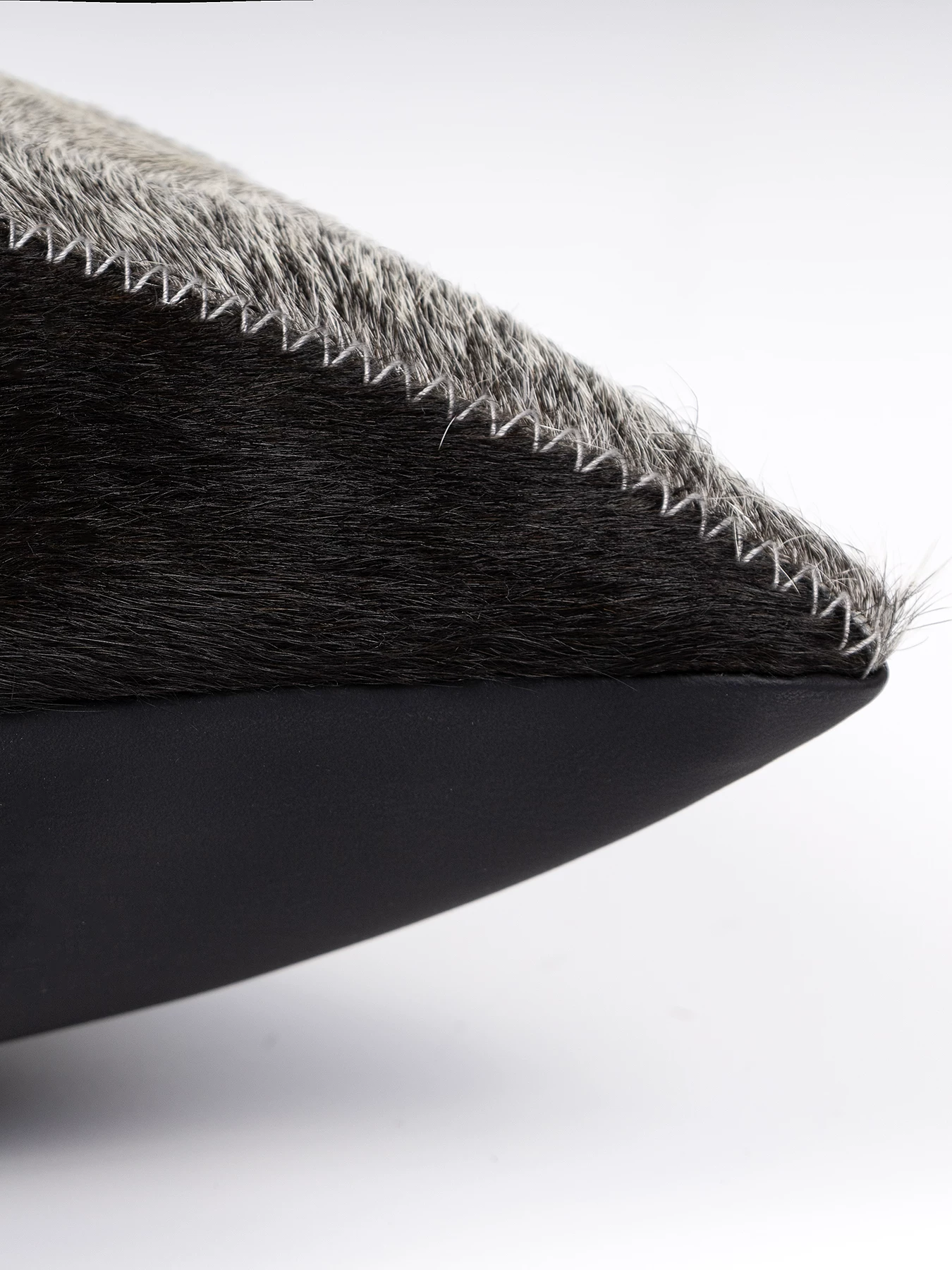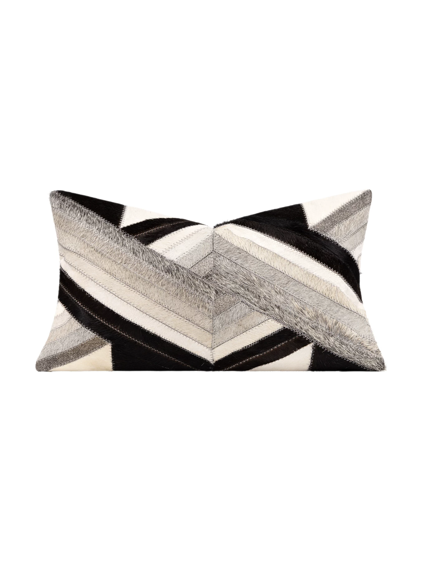 Decorative Cushion for Sofa and Living Room: Luxurious Black and Gray Genuine Horsehair Patchwork Lumbar Pillow for Model Homes and Villas