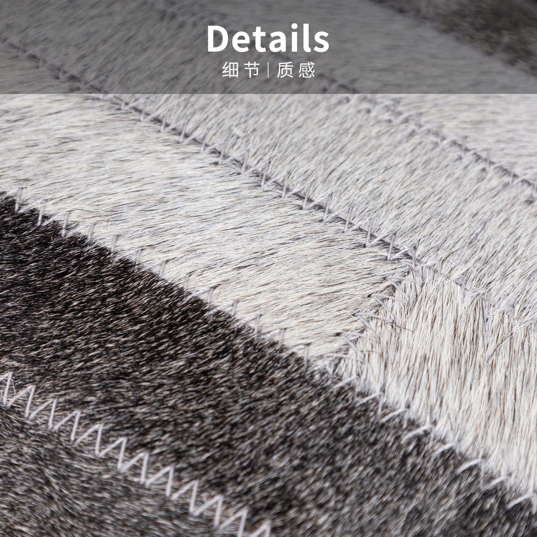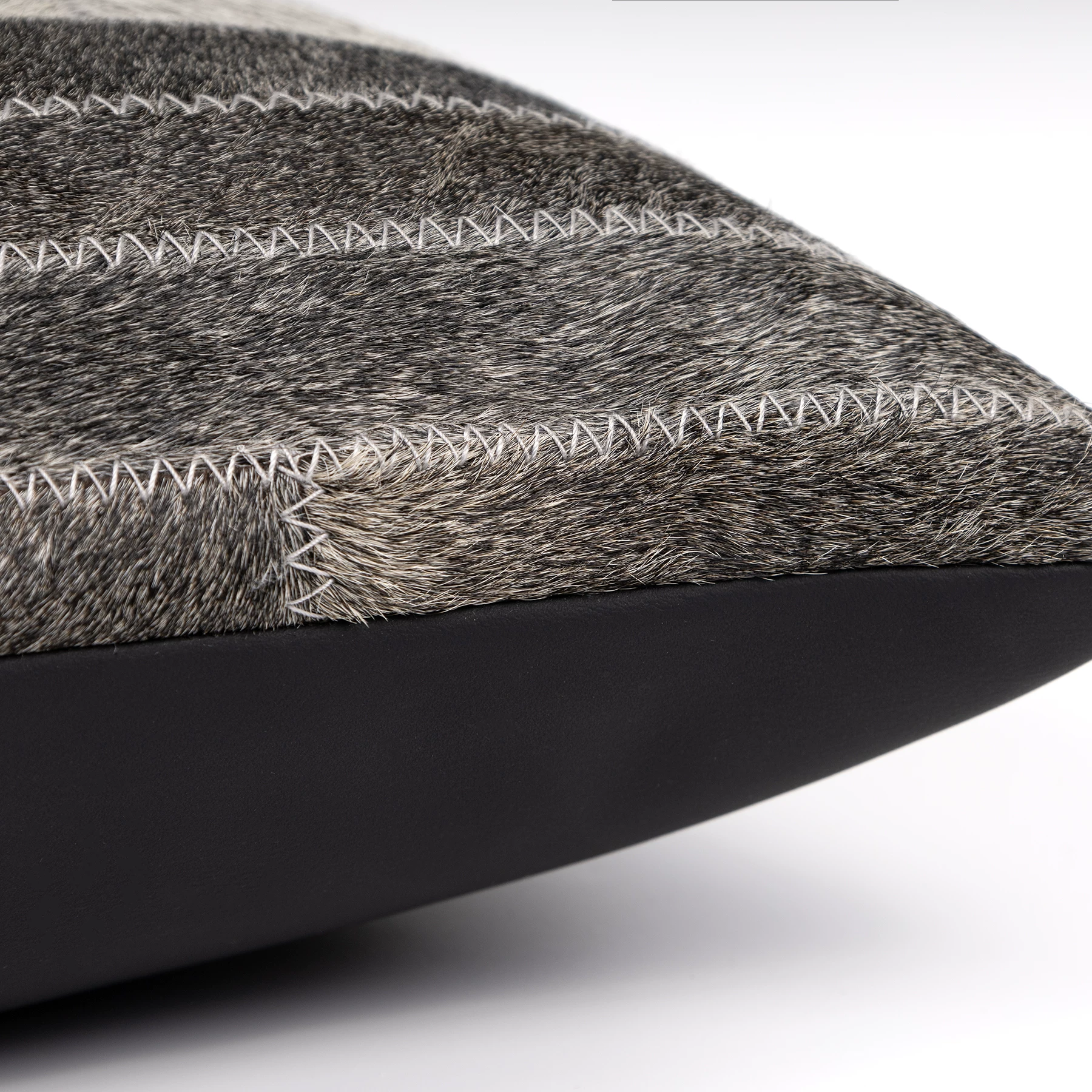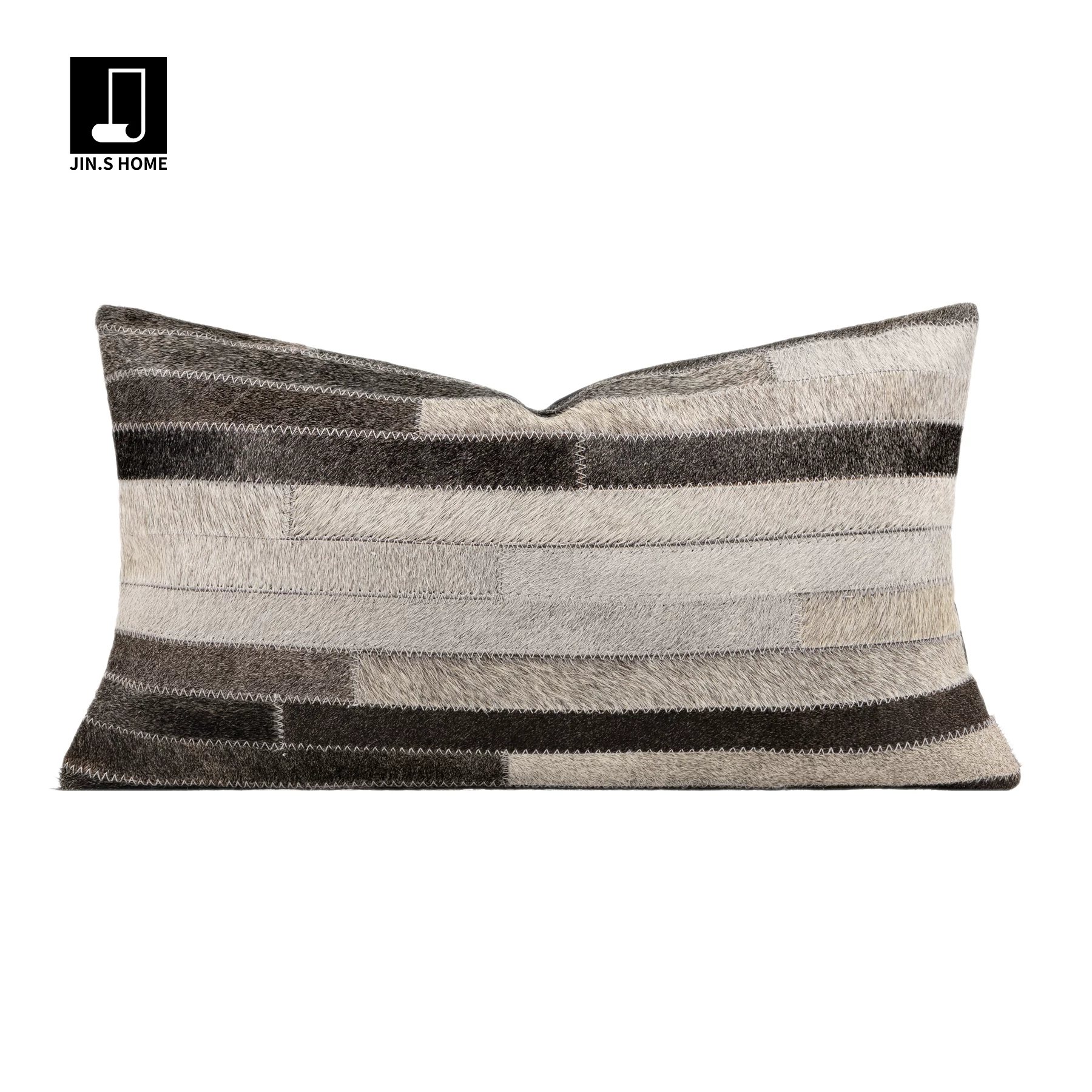 Decorative Cushion for Sofa and Living Room: Luxurious Black and Gray Genuine Horsehair Woven Lumbar Pillow for Model Homes and Villas