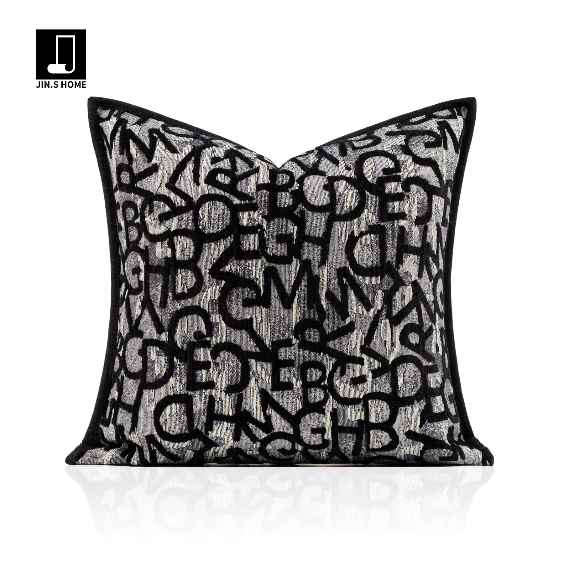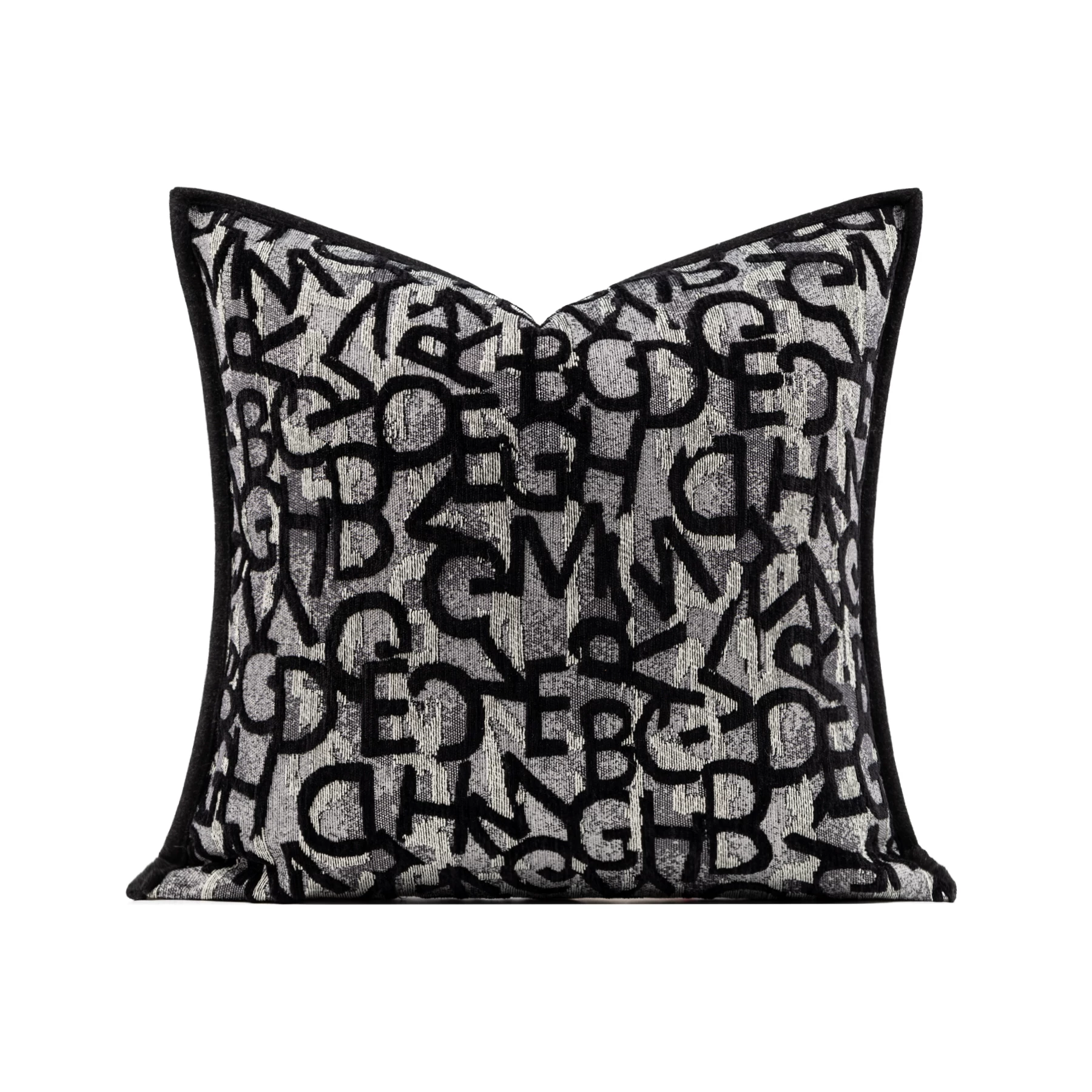 Interior Decor: Minimalist, Modern, New Chinese, and Scandinavian Minimalist Sofa Showroom – Black and White Letter-Patterned Cushion Covers