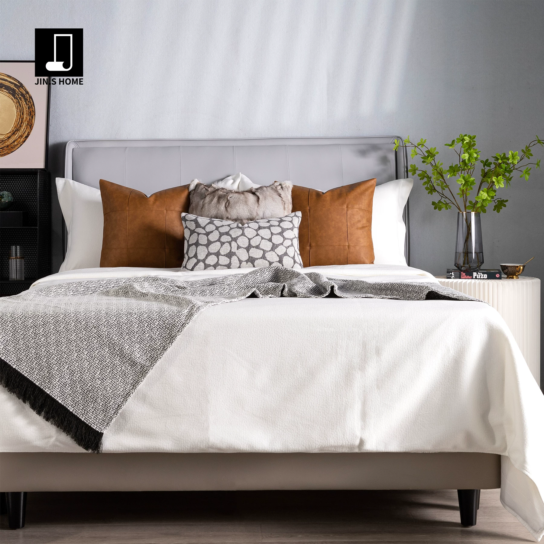 11-Piece Brown-Toned Bedding Set for Soft Furnishing Showrooms, Hotel Furniture Showrooms, Bedding, Fox Fur Throws, and Pillows