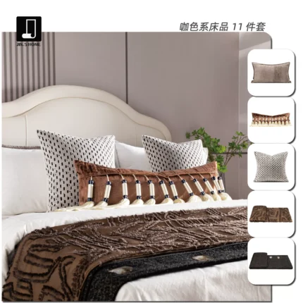 Elegant, Lightly Luxurious Showroom: 11-Piece Coffee-Colored Bedding Set—Hotel-Quality Bedding for Villa Showrooms, Multi-Piece Sets with a Sophisticated Look