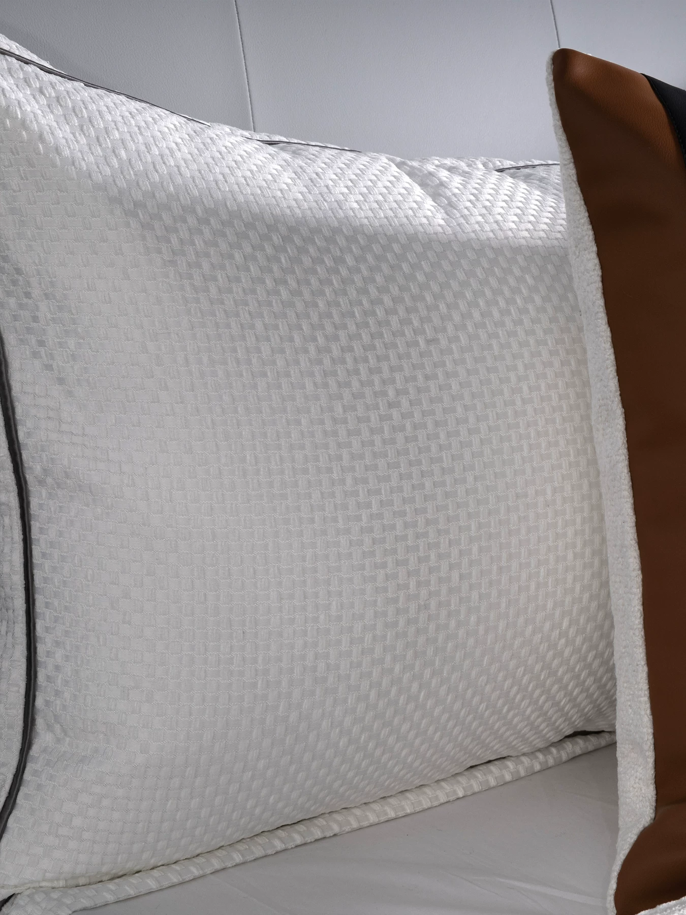 Interior Design Showroom: Brown Bedding Sets, Modern Luxury Furniture Showroom, Patchwork Pillows, 9-Piece Bedding Sets