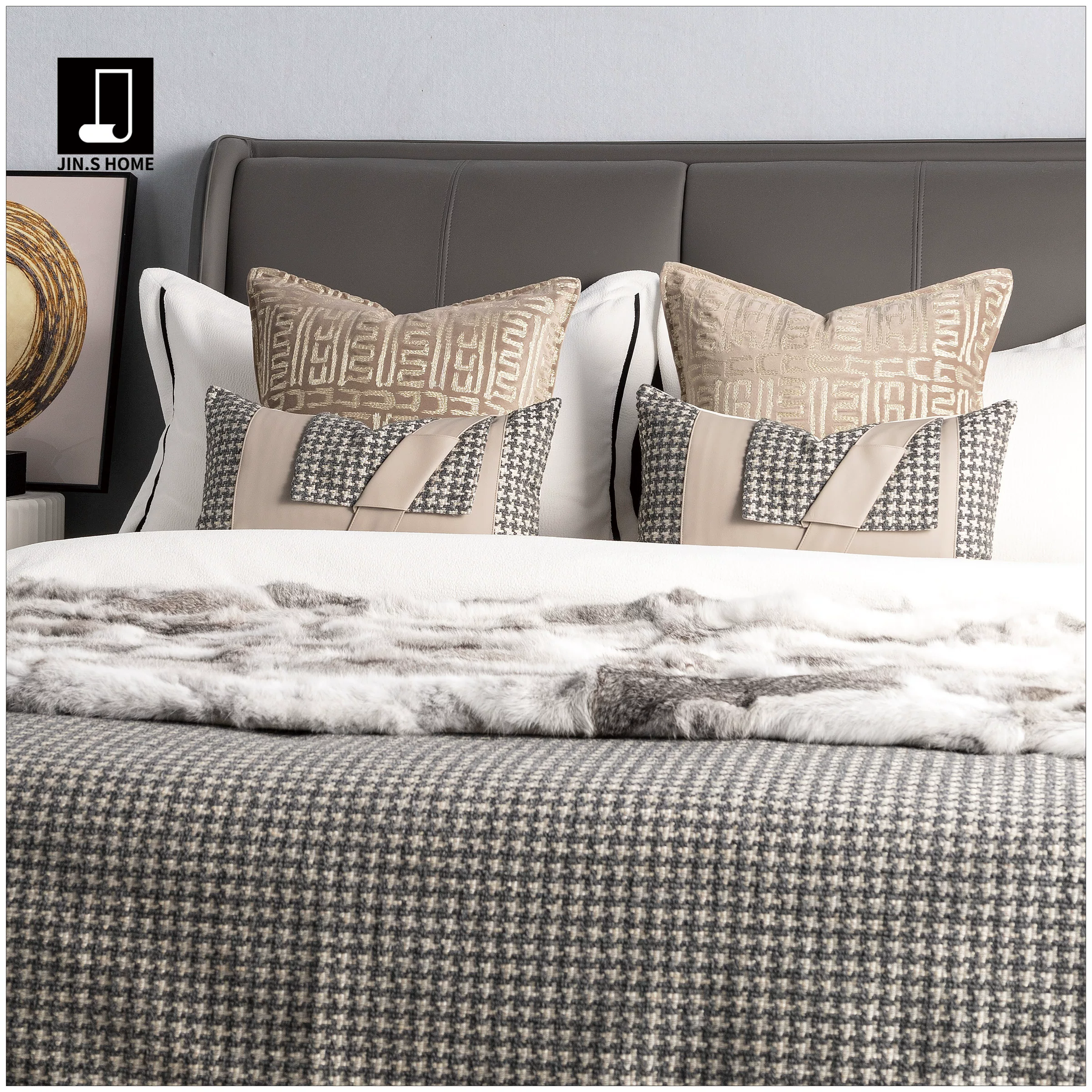 Italian-style luxury showroom hotel throw; modern Nordic villa sofa throw; houndstooth footboard throw