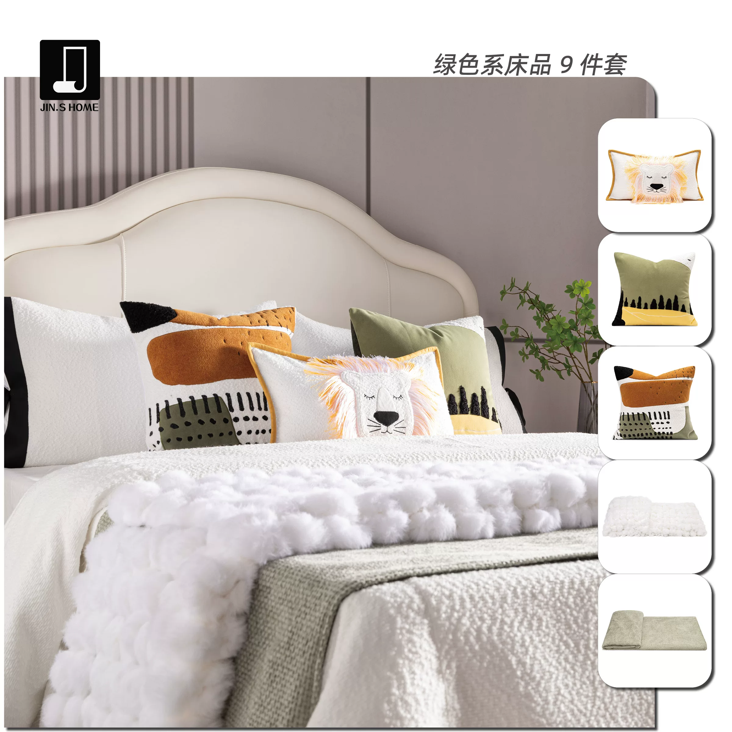 Jinshi Model Home: 11-Piece Green Bedding Set for Children's Rooms, High-End Custom Multi-Piece Sets for Guesthouse and Villa Showrooms