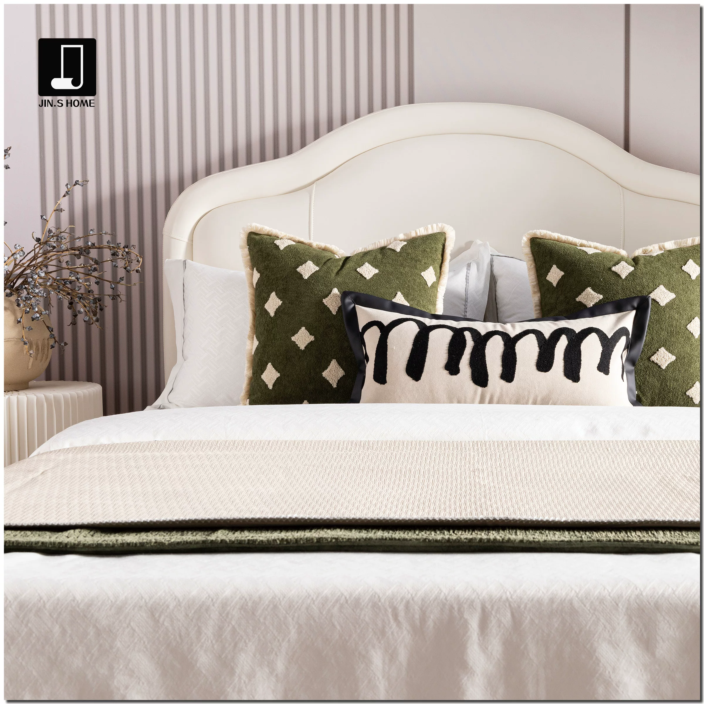 Luxury 10-Piece Bedding Set for Model Homes: Light Luxury, High-End, Eco-Friendly Woven Leather and Rabbit Fur Throw Blanket