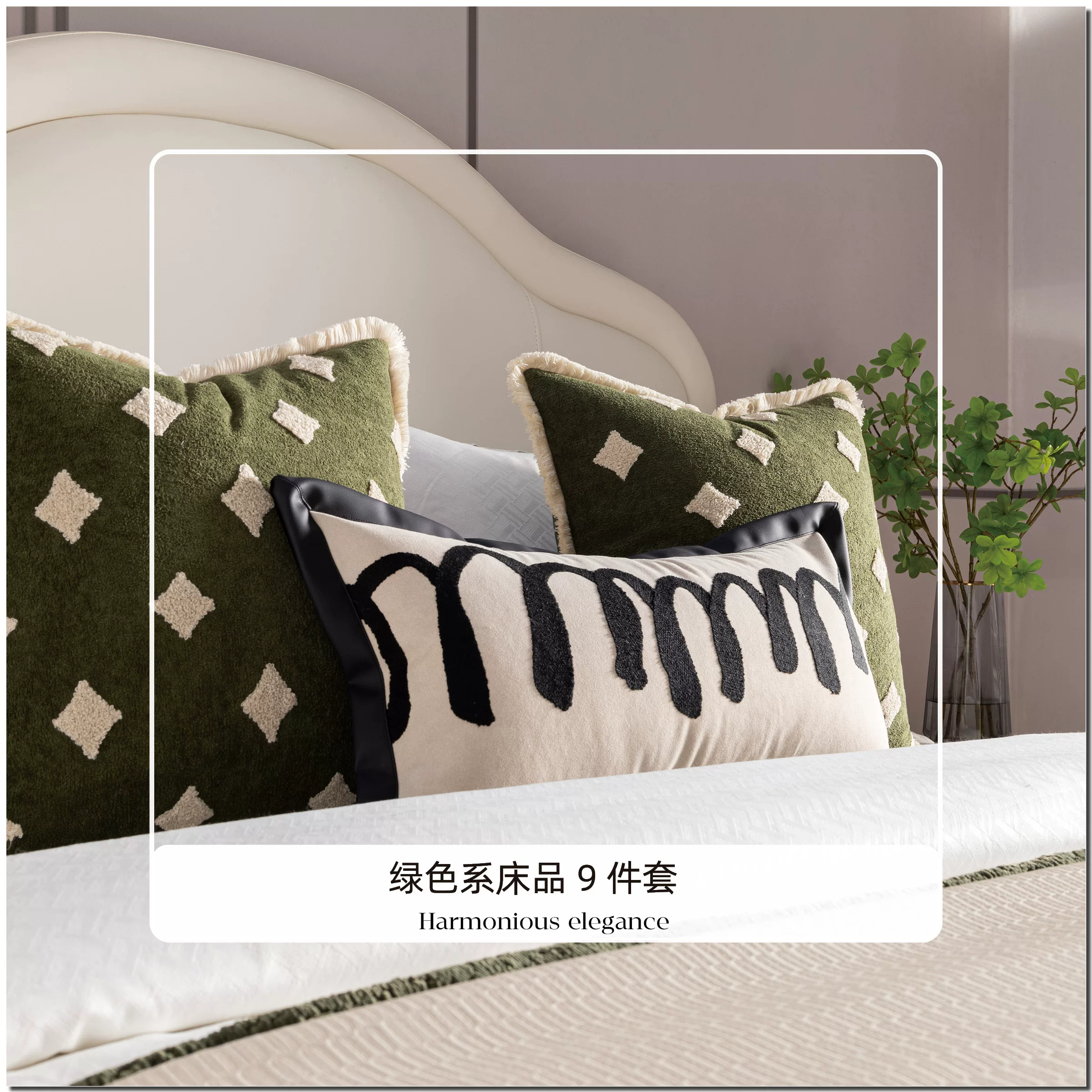 Brocade-Style Wabi-Sabi Green 9-Piece Bedding Set for Model Rooms, B&Bs, Villas, and Showrooms—High-End Multi-Piece Set