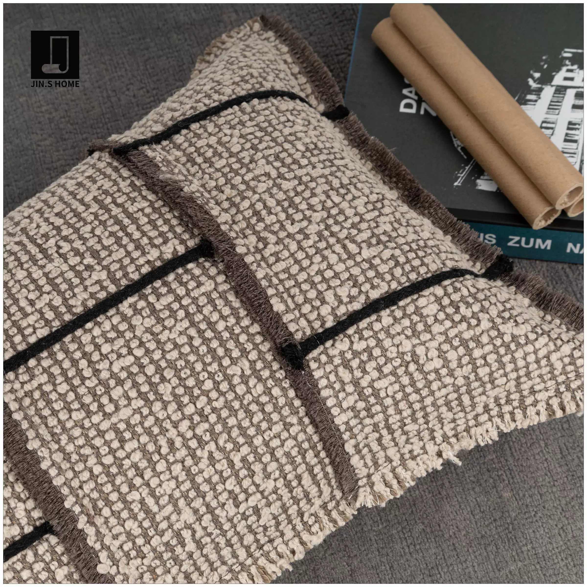 Jinshi Villa Cotton-Linen Wabi-Sabi Style Cushion Covers, Vintage-Inspired Luxury Cushions for Showrooms, Hotel Display Cushions